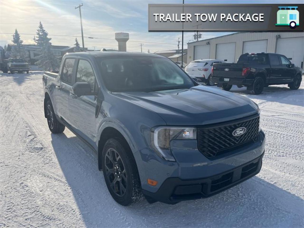 Our Maverick's trim level is Lariat. This advanced hybrid pickup truck blends capability, efficiency, and premium technology, offering all-wheel drive, Class I towing with trailer sway control, spray-in bed liner, integrated storage, and a 1,400 kg maximum payload for confident hauling and utility. Inside, ActiveX heated front bucket seats with power lumbar, a heated leatherette steering wheel, voice-activated dual-zone automatic climate control, and a 13.2 SYNC 4 display with B&O sound, wireless Apple CarPlay/Android Auto, SiriusXM Traffic, connected navigation, 5G Wi-Fi hotspot, and keyfob remote start create a connected and comfortable cabin. Safety is exceptional with Ford Co-Pilot360 technologies including blind-spot assist, lane centering and lane-keeping aid, adaptive cruise with stop-and-go, aerial view and multiple cameras, reverse brake assist, pre-collision assist with automatic emergency braking and intersection support, front cross-traffic mitigation, front/rear parking sensors, Safety Canopy airbags, and electronic stability control with roll stability management. This vehicle has been upgraded with the following features: 502A Equipment Group, Heated Seats, 19 inch Aluminium Wheels, Tow Package, Black Appearance Package.