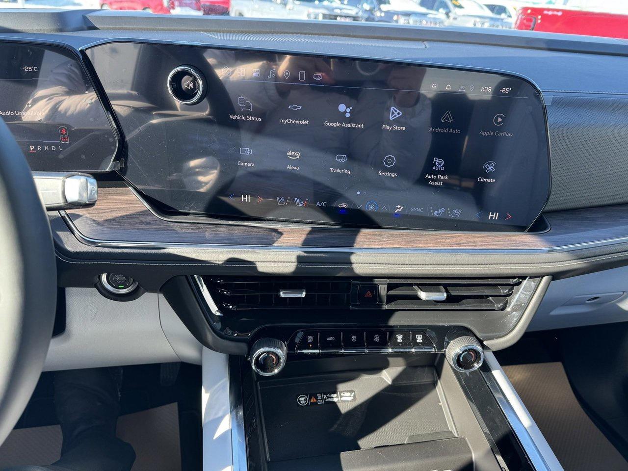 Up to any task, our 2025 Chevrolet Tahoe Premier 4WD is featured in Dark Ash Metallic design! Motivated by a 5.3 Litre V8 supplying 355hp to a 10 Speed Automatic transmission so you can master the miles with plenty of muscle. Features like Magnetic Ride Control and a 2-speed transfer case enable fierce capability, and this Four Wheel Drive SUV sees approximately 12.4L/100km on the highway. Standing proud, our Tahoe boasts LED lighting, bright roof rails, chrome accents, 20-inch alloy wheels, black assist steps, and a hands-free liftgate. Intelligent interior details greet you in our Premier cabin with heated/ventilated leather power front and heated rear seats, a power-folding third row, a heated-wrapped power steering wheel, tri-zone automatic climate control, and a power-sliding center console. A 12-inch driver display and a 10.2-inch touchscreen anchor the dashboard, supporting connected navigation, WiFi compatibility, wireless Android Auto/Apple CarPlay, Bose audio, wireless charging, voice control, and Bluetooth. Must-have Chevrolet safety systems include blind-spot monitoring, rear cross-traffic alert, automatic braking, forward-collision warning, an HD rearview camera, lane-keeping assistance, parking sensors, hitch guidance, trailer sway control, and more. Designed to dominate, our Tahoe Premier delivers the goods! Save this Page and Call for Availability. We Know You Will Enjoy Your Test Drive Towards Ownership!