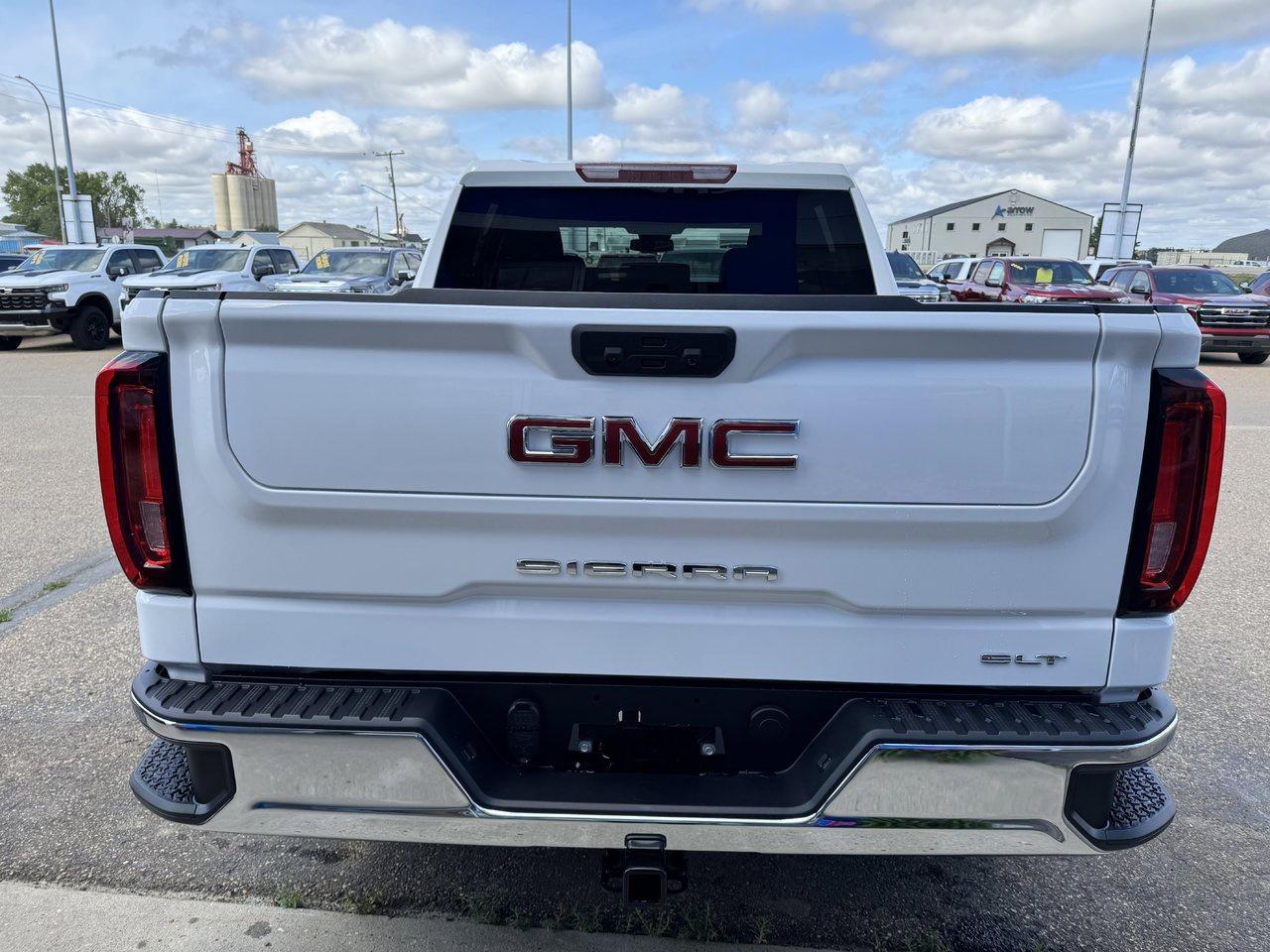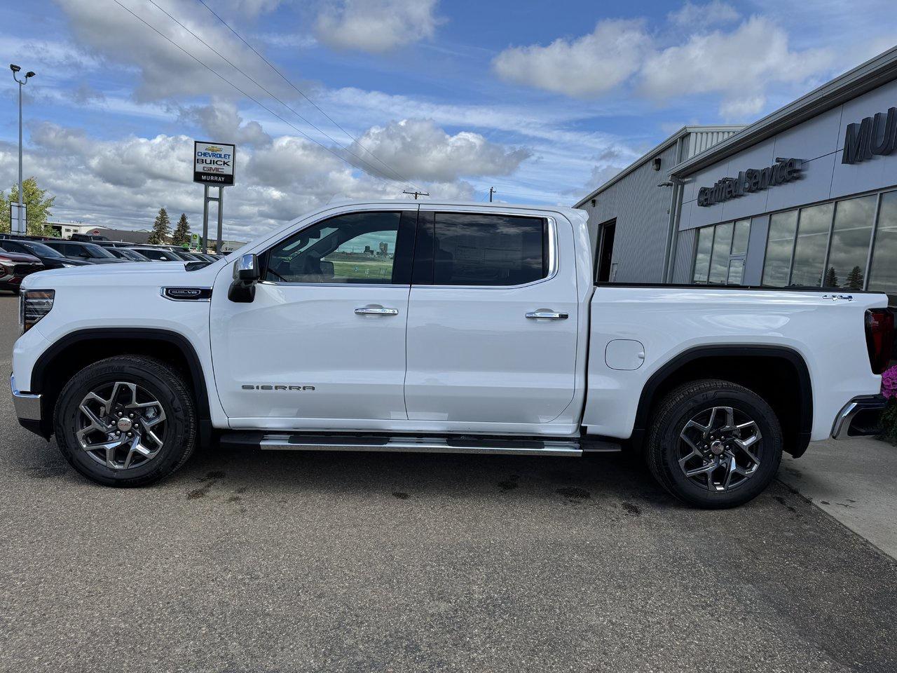 Exuding power and style, our 2025 GMC Sierra 1500 SLT Crew Cab 4X4 is built to break boundaries in Summit White! Motivated by a 5.3 Litre V8 supplying 355hp to a 10 Speed Automatic transmission complemented by a locking rear differential for dynamic performance. Our Four Wheel Drive truck relies on that setup for serious capability and scores approximately 11.2L/100km on the highway. Proudly poised for action, our Sierra boasts LED lighting, fog lamps, 18-inch alloy wheels, a MultiPro tailgate, perimeter lighting, bed lighting, chrome bumpers, and heated power-folding mirrors with chrome caps. You are going to love our SLT cabin that keeps the benefits coming with heated leather power front seats, a heated-wrapped steering wheel, dual-zone automatic climate control, remote start, keyless access, pushbutton ignition, and 12V/120V outlets. Tech lovers can enjoy the 13.4-inch touchscreen and 12.3-inch driver display that support Google Built-in, wireless Apple CarPlay/Android Auto, Bluetooth, WiFi compatibility, and six-speaker audio. GMC helps you avoid harm's way with Professional Grade driver assistance from automatic braking, lane departure warning, forward collision warning, a rearview camera, lane-keeping assistance, pedestrian detection, tire pressure monitoring, hill-start assist, and more. Crafted to exceed expectations, our Sierra 1500 SLT is an excellent choice! Save this Page and Call for Availability. We Know You Will Enjoy Your Test Drive Towards Ownership!