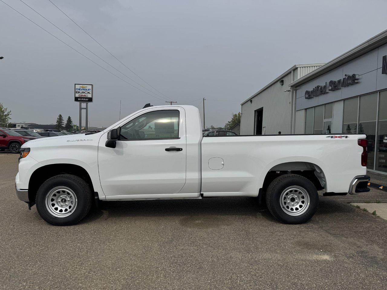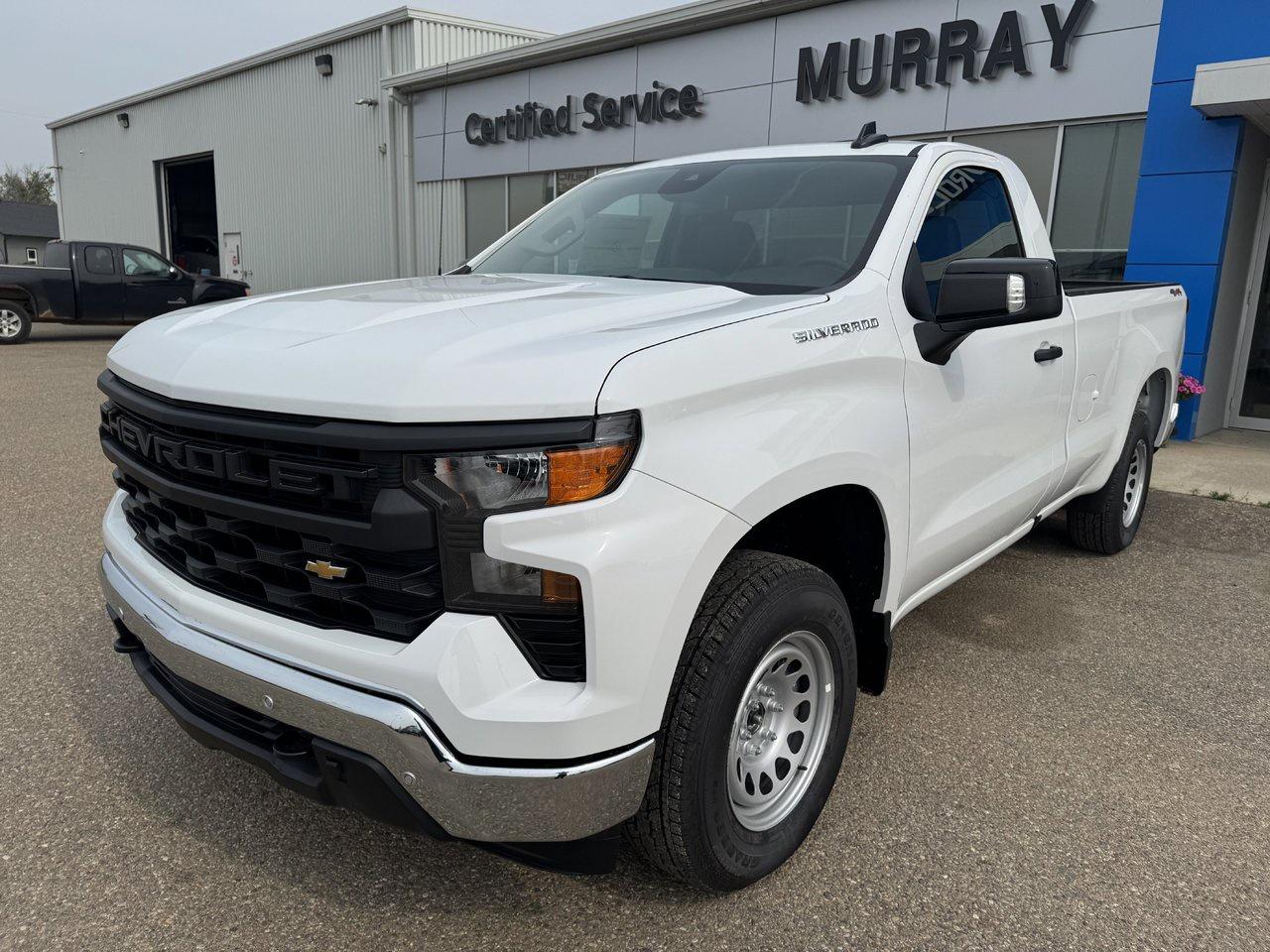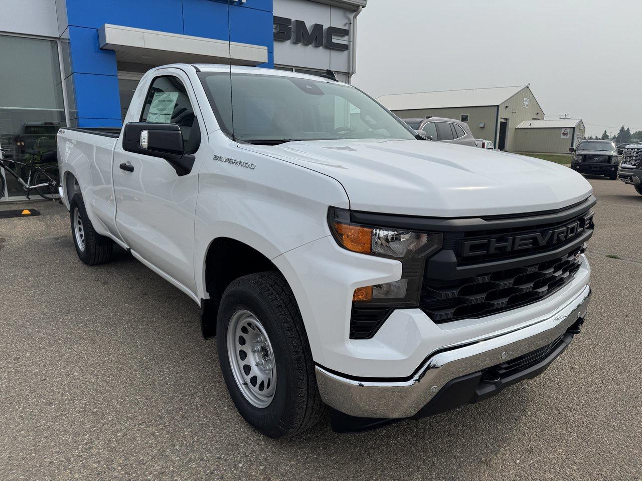 Ready to tackle the day, our 2026 Chevrolet Silverado 1500 W/T Regular Cab 4X4 in Summit White delivers unstoppable confidence with fleet-friendly simplicity and the muscle to handle heavy workloads with ease. Motivated by a 5.3 Liter V8 offering 355hp to a 10 Speed Automatic transmission engineered for strong towing and hauling. This Four Wheel Drive truck also has an impressively capable suspension for extra comfort on big jobs, and it sees approximately 11.8L/100km on the highway. Our Silverado makes a powerful impression with a premium grille, LED lighting, black bumpers, matching mirror caps, a rear CornerStep, and convenient cab-mounted cargo lamps. It's a handsome exterior that helps you stand out from the crowd! When you get behind the wheel, our Work Truck cabin delivers key features to help conquer your daily challenges, starting with supportive seats, a tilt-adjustable steering wheel, single-zone climate control, power accessories, keyless access, a 3.5-inch information display, and a 12V outlet. Digital advantages for helping you work smarter include a 7-inch touchscreen, WiFi compatibility, wireless Apple CarPlay/Android Auto, Bluetooth, voice control, and a two-speaker audio system. There's plenty of driver assistance, too. Chevrolet encourages around-the-clock safety with automatic braking, lane-keeping assistance, forward collision warning, pedestrian detection, an HD rearview camera, and more. It's time to raise the bar with our remarkable Silverado 1500 W/T. Save this Page and Call for Availability. We Know You Will Enjoy Your Test Drive Towards Ownership!
