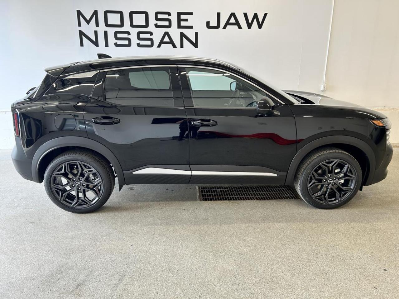 now available at Moose Jaw Nissan in Moose Jaw. This compact crossover stands out with its bold black exterior and refined charcoal interior