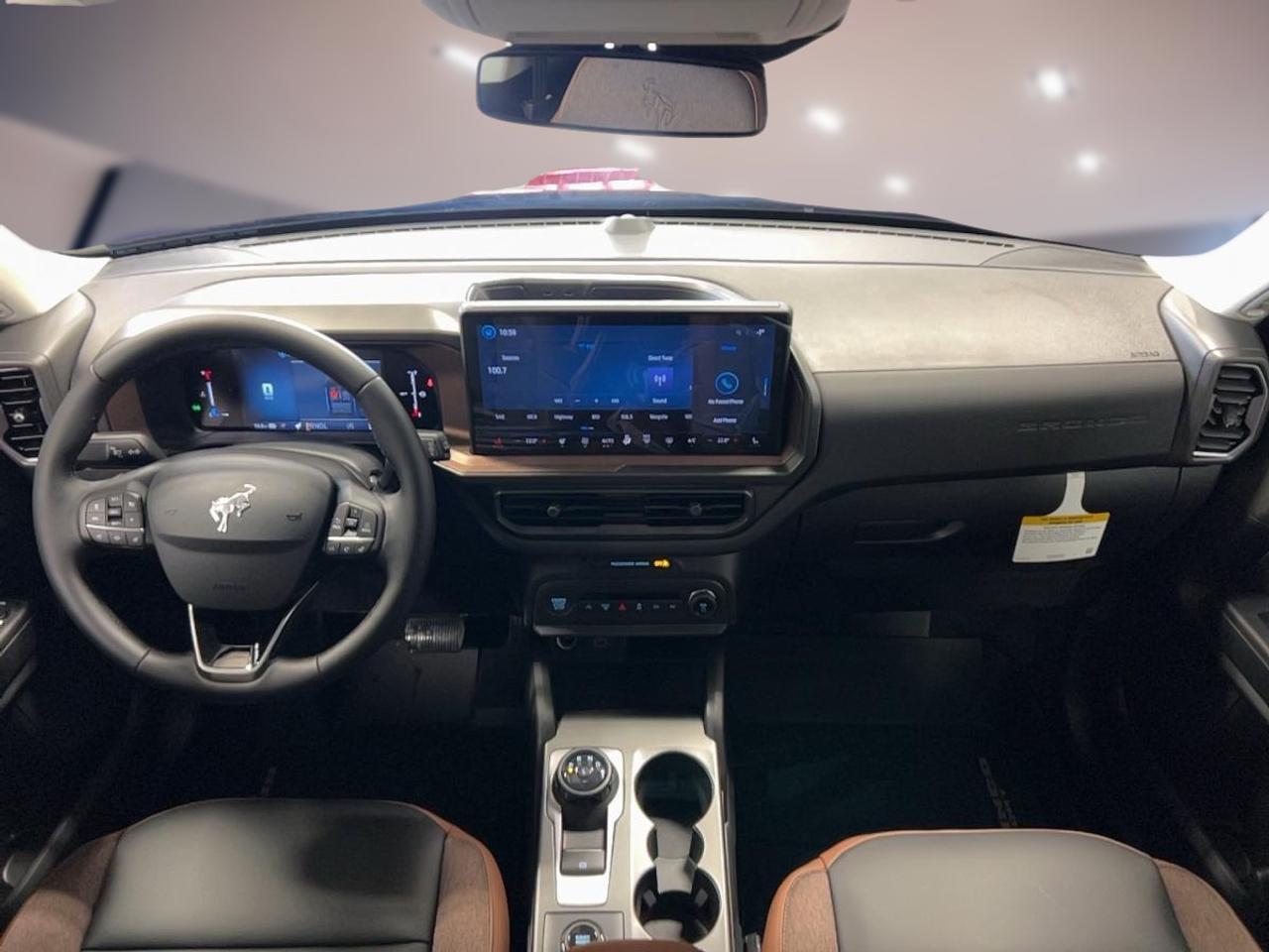 The 2026 Ford Bronco Sport Outer Banks 4x4 also includes push button start, automatic headlights, LED headlamps, an auto-dimming rearview mirror, illuminated driver and passenger vanity mirrors, and ambient lighting package details that help create a more refined cabin experience.
