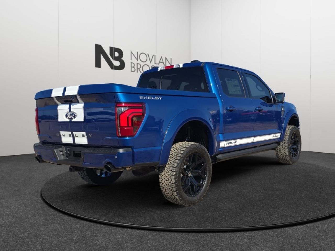 This atlas blue metallic Crew Cab 4X4 pickup has a 10 speed automatic transmission and is powered by a 785HP 5.0L 8 Cylinder Engine. This vehicle has been upgraded with the following features: Shelby Off Road, 785 Supercharged 5.0l V8, Shelby By Fox Suspension System, 22 Inch Shelby Alloy Wheels, 35 Inch Premium All Terrain Tires, Shelby Spec Interior Upgrade, Shelby Body/hood/fenders.