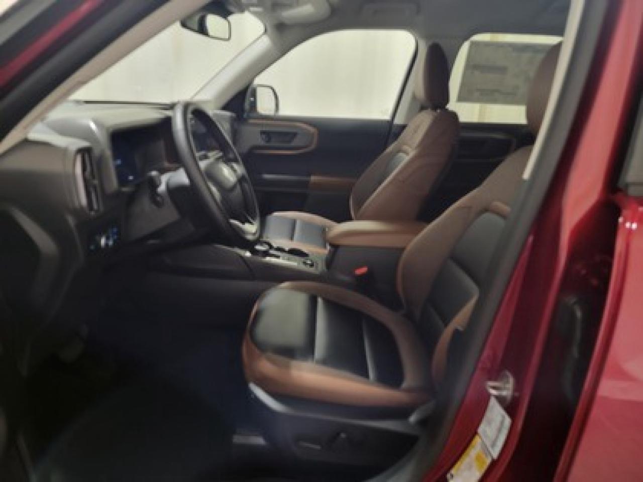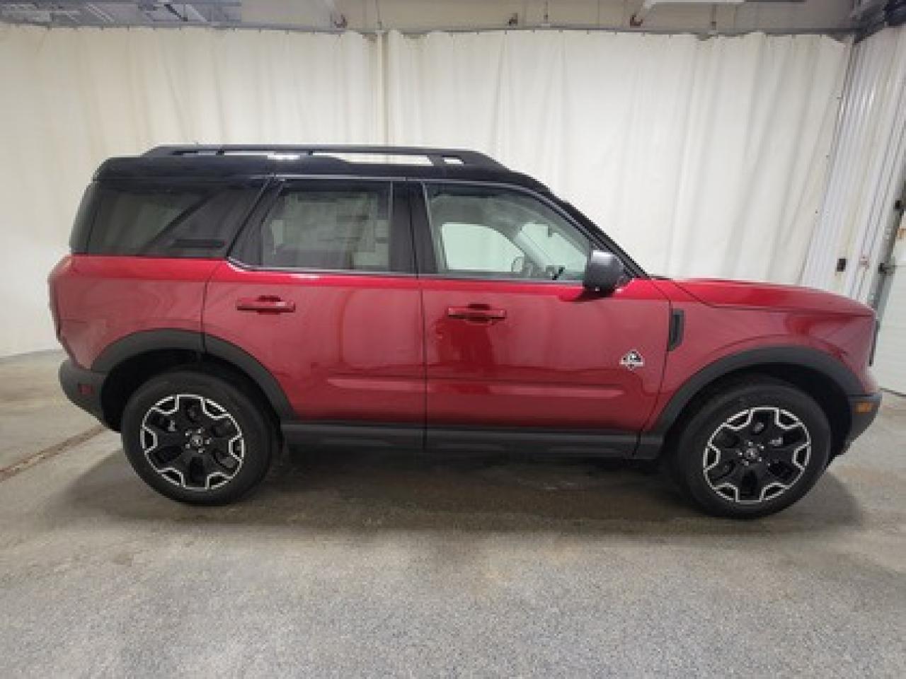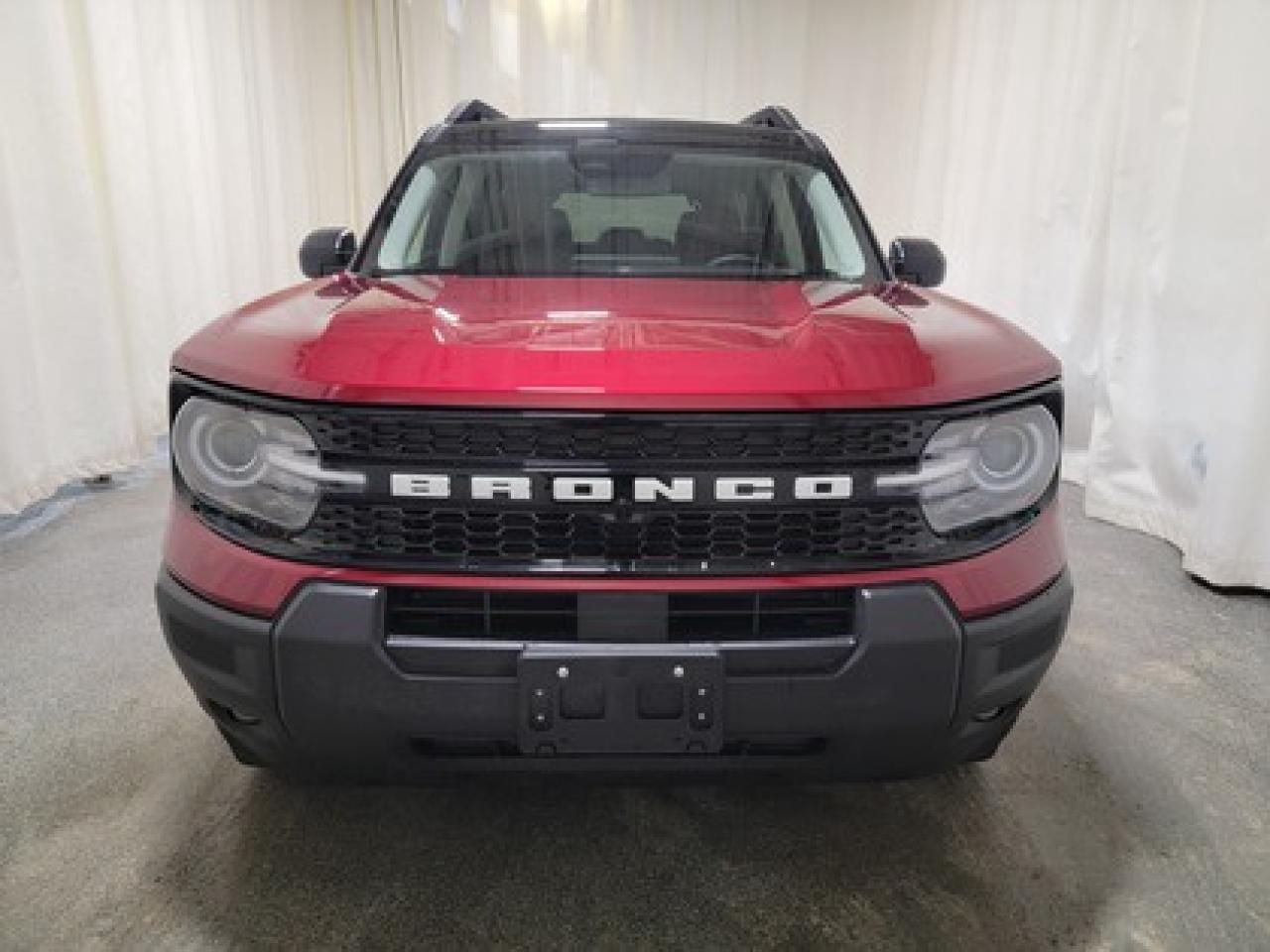This all-new 2025 Ford Bronco Sport Outer Banks 300A shines in Ruby Red Metallic Tinted Clearcoat. This 5-passenger compact SUV is powered by the 1.5L EcoBoost® engine, delivering 181 horsepower and 190 lb-ft of torque. With an 8-speed automatic transmission and Auto Start-Stop Technology, it offers a smooth yet efficient drive, ideal for city commutes or highway adventures.