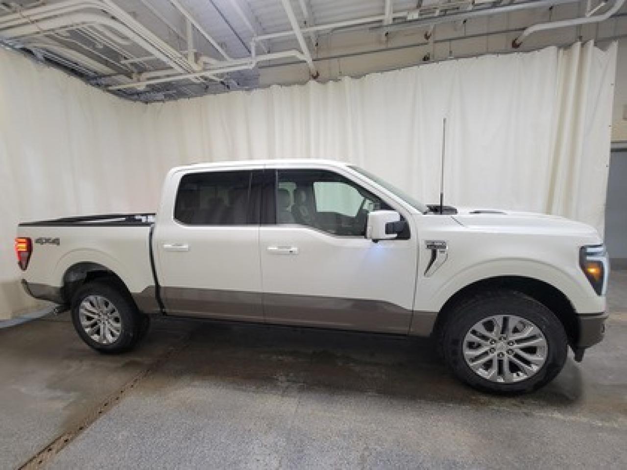 The all-new 2026 Ford F-150 King Ranch is presented in Star White Metallic Tri-Coat. Under the hood, it features the 3.5L EcoBoost engine, delivering an impressive 400 horsepower and 500 lb-ft of torque. Paired with a 10-speed automatic transmission, this truck provides both efficiency and power, achieving a combined fuel economy of 12.3L/100km (23 miles per gallon).