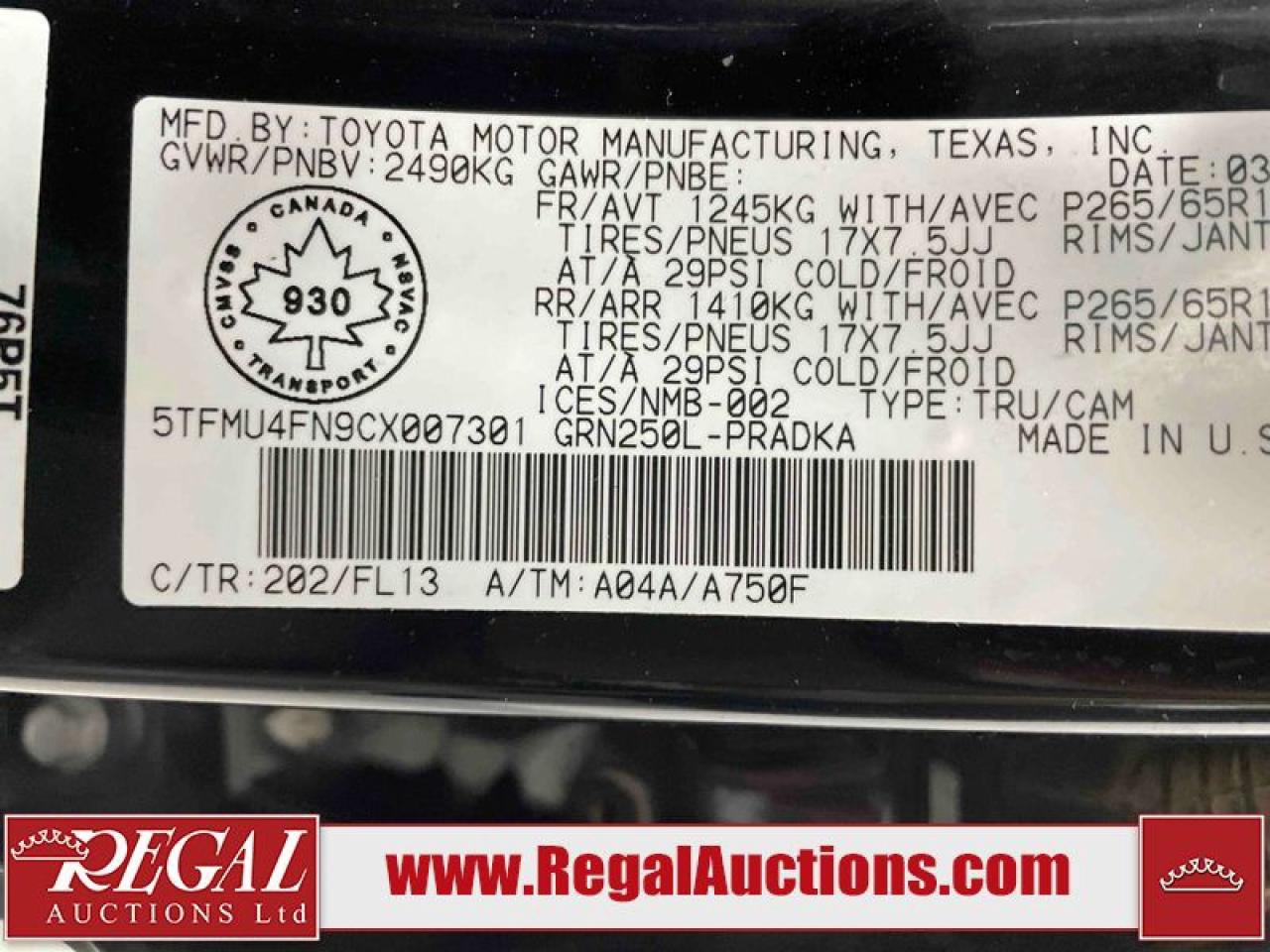 Live Online Bidding: This vehicle will be available for bidding over the internet, visit www.RegalAuctions.com to register.