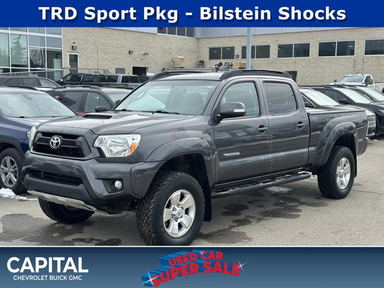 Recent Arrival!Ask for the Internet Department for more information or book your test drive today! Call 403-256-4960 for fast answers at your fingertips! Disclaimer: All prices are plus taxes. See dealer for details. AMVIC Licensed Dealer # B2020028.2012 Tacoma V6 5-Speed Automatic 4WD 4WD, 17" Aluminum Alloy Wheels, 400 Watt (120 V) Cargo Bed Power Outlet, 6,400 lbs (2,903 kg) Towing Capacity, 7 Pin Trailer Wire Harness, Auto-Dimming Rear-View Mirror, Back-Up Camera, Class IV Weight Distribution Trailer Hitch, Colour Keyed Fender Flares, Colour-Keyed Bumpers, Coloured Door Handles, Coloured Grille, Coloured Mirrors, Digital Compass, Dual Illuminated Vanity Mirrors, Engine Oil Cooler, Fog Lamps, Front Bilstein Shock Absorbers, Front Seat Back Pockets, Front Sport Seats, Garage Door Opener, Hood Scoop, Illuminated Entry, Integrated Signal Lamps, Leather Wrapped Shift Knob, Leather Wrapped Steering Wheel, LED Brake Lamps, Metallic Dash Accents, Outside Temperature Gauge, Rear Bilstein Shock Absorbers, Trailer Sway Control, Transmission Cooler, TRD Decals, TRD Sport Package, Upgraded Alternator, Variable Intermittent Wipers, Water Repellant Fabric Seat Trim, Wheel Locks.