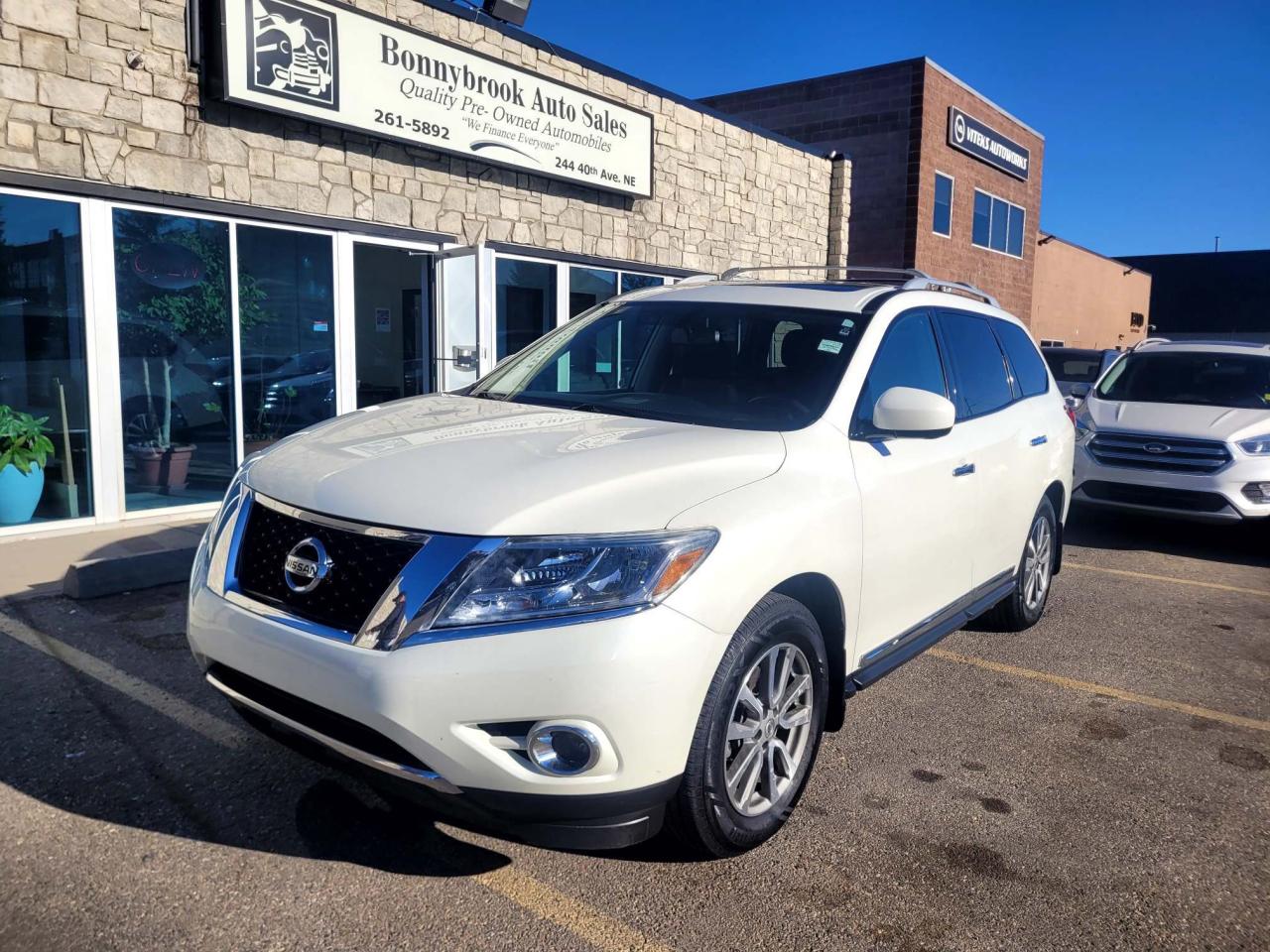 Need a vehicle that has style? Look at our Pre-Owned 2016 NISSAN PATHFINDER SL 4X4 7 PASSENGER (Pictured in photo) Filled with top options including Heated Leather Seats Heated steering wheel, Power Sunroof, Keyless Entry, Bluetooth, Navigation Power Mirrors, Power Locks, Power Windows. Am/Fm stereo Cd player Power sunroof Rearview camera Power Lift Gate/Air /Tilt /Cruise/ comes with 6 month power train warranty with options to extend. The vehicle has hail damage. Smooth ride at a great price that's ready for your test drive. Fully inspected and given a clean bill of health by our technicians. Fully detailed on the interior and exterior so it feels like new to you. There should never be any surprises when buying a used car, that's why we share our Mechanical Fitness Assessment and Carfax with our customers, so you know what we know. Bonnybrook Auto sales is helping thousands find quality used vehicles at prices they can afford. If you would like to book a test drive, have questions about a vehicle or need information on finance rates, give our friendly staff a call today! Bonnybrook auto sales is proudly one of the few car dealerships that have been serving Calgary for over Twenty years. /TRADE INS WELCOMED/ Amvic Licensed Business. Due to the recent increase for used vehicles. We are in need of pre-owned vehicles. We give top dollar for your trades. We also purchase all makes and models of vehicles.