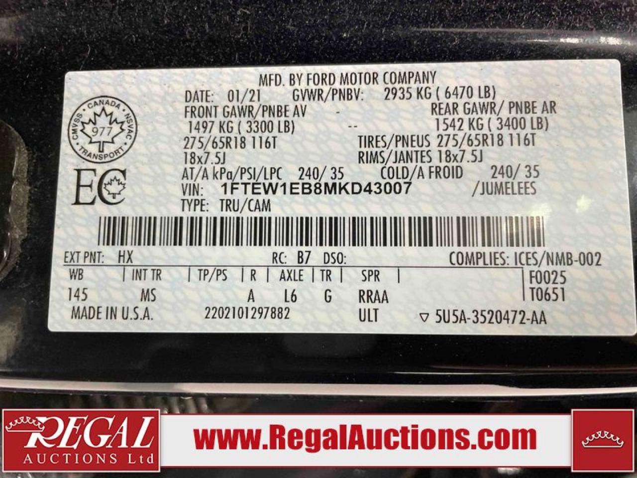 Live Online Bidding: This vehicle will be available for bidding over the internet, visit www.RegalAuctions.com to register.