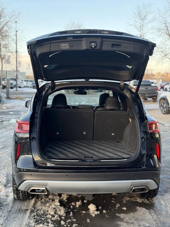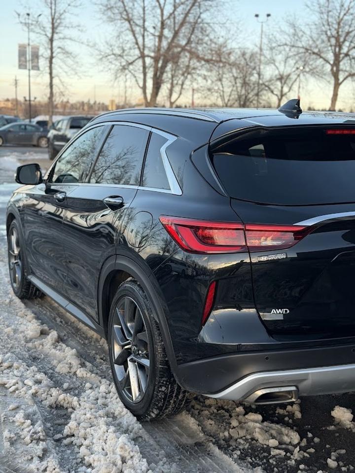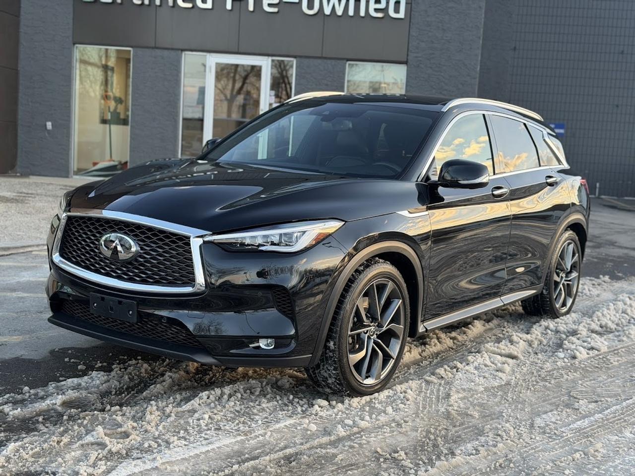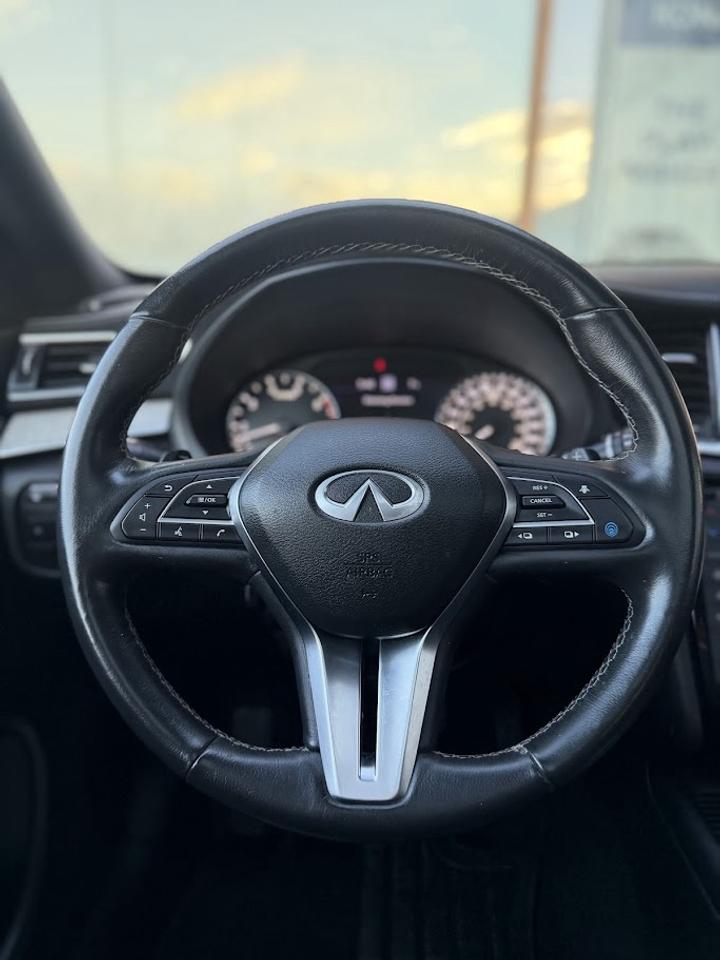 This ONE OWNER ACCIDENT FREE LOW KM Infiniti QX50 SENSORY comes fully loaded with a reliable and responsive 2.0L TURBOCHARGED motor, automatic transmission with selectable drive modes, an impressive ALL WHEEL DRIVE system, 20-inch alloy wheels, automatic LED headlights, front & rear parking sensors, premium 16-speaker BOSE sound system, Heads Up Display, heated / cooled power leather seats with memory, suede headliner, tri-zone automatic climate control, NAVIGATION system, 360-degree parking camera, PANORAMIC ROOF, LED fog lights, factory remote starter, auto dimming rearview mirror, adaptive cruise control, Blind Spot Detection system, Lane Keep Assist, APPLE CARPLAY / ANDROID AUTO, Forward Collision Mitigation, Lane Departure Warning and much more!!!