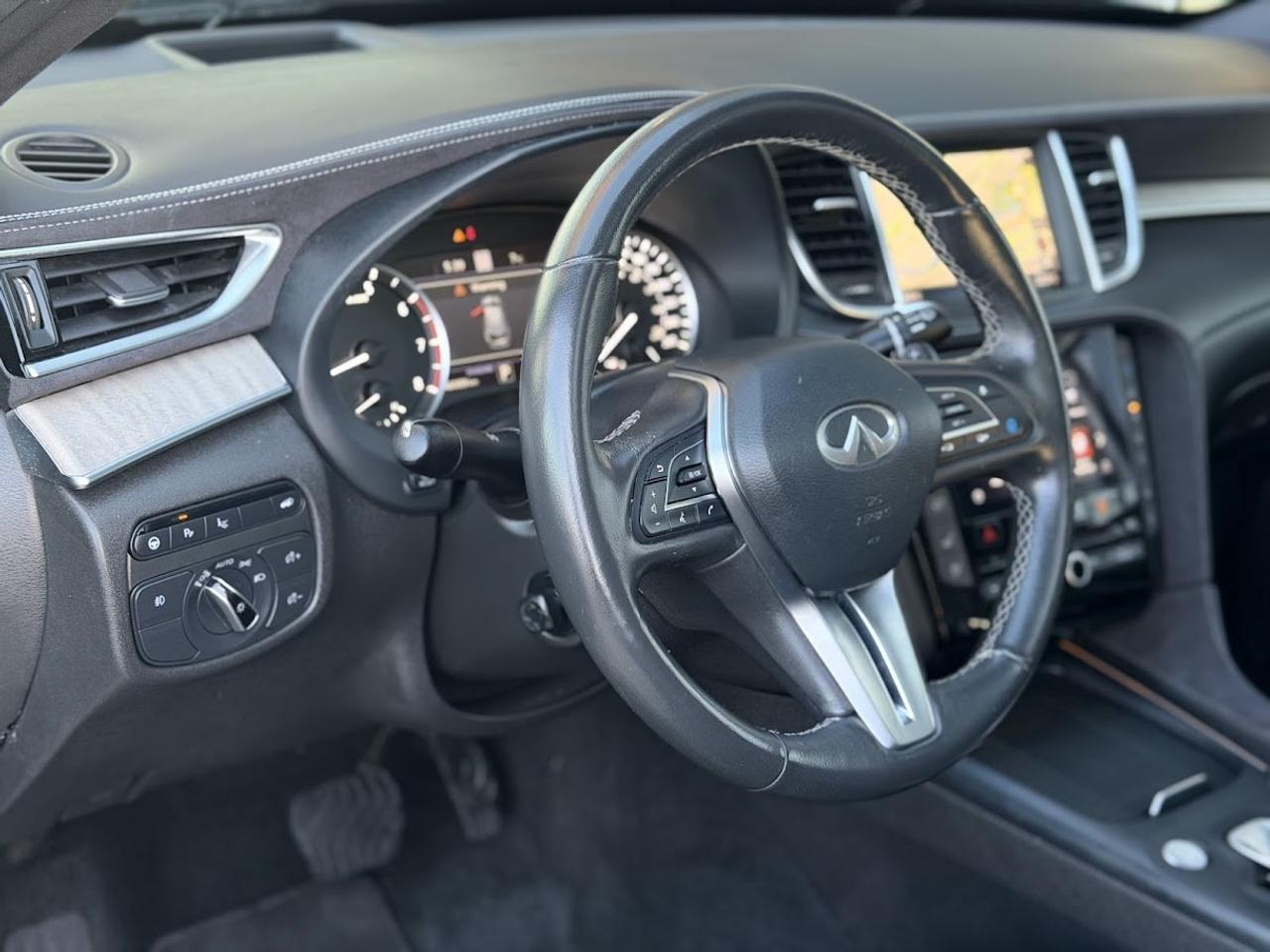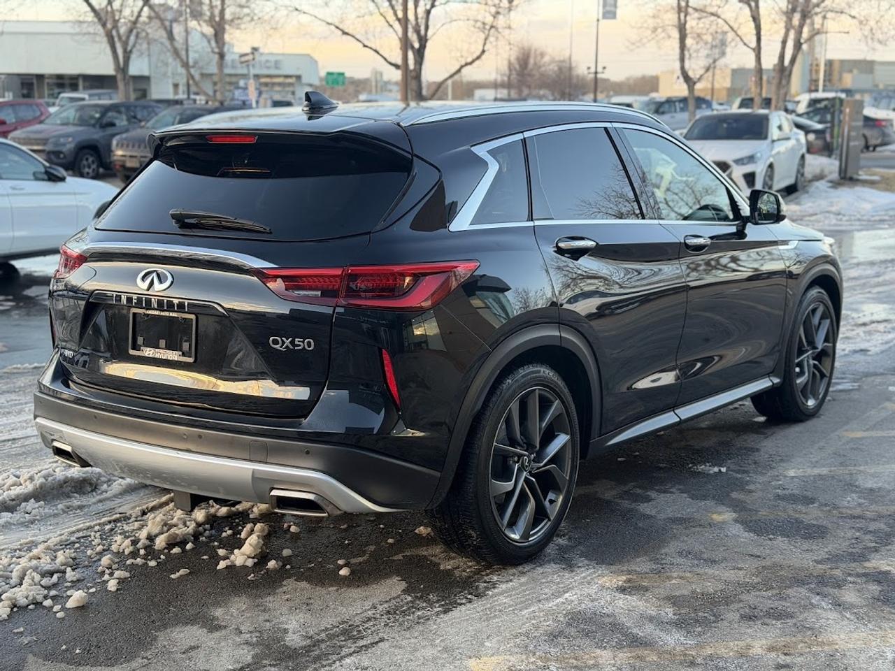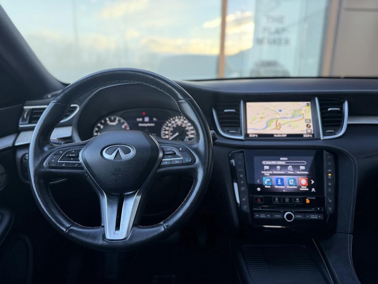 This ONE OWNER ACCIDENT FREE LOW KM Infiniti QX50 SENSORY comes fully loaded with a reliable and responsive 2.0L TURBOCHARGED motor, automatic transmission with selectable drive modes, an impressive ALL WHEEL DRIVE system, 20-inch alloy wheels, automatic LED headlights, front & rear parking sensors, premium 16-speaker BOSE sound system, Heads Up Display, heated / cooled power leather seats with memory, suede headliner, tri-zone automatic climate control, NAVIGATION system, 360-degree parking camera, PANORAMIC ROOF, LED fog lights, factory remote starter, auto dimming rearview mirror, adaptive cruise control, Blind Spot Detection system, Lane Keep Assist, APPLE CARPLAY / ANDROID AUTO, Forward Collision Mitigation, Lane Departure Warning and much more!!!