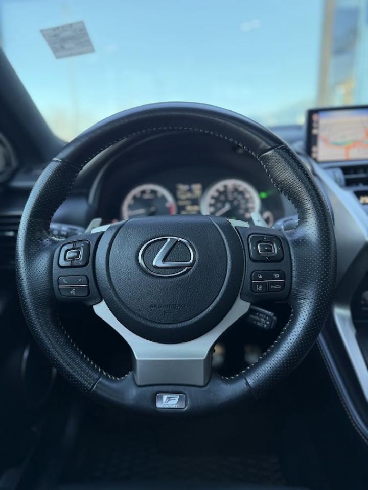 This ACCIDENT FREE Lexus NX300 F SPORT comes fully loaded with a reliable and responsive 2.0L TURBOCHARGED motor, automatic transmission with selectable drive modes, an amazing ALL WHEEL DRIVE system, front & rear parking sensors, premium automatic TRIPLE LED headlights, power sunroof, Blind Spot Detection system, back-up camera, NAVIGATION system, 8-inch screen w/ APPLE CARPLAY / ANDROID AUTO, premium sound system, F SPORT adds: F SPORT alloy wheels / exterior appearance package / sport-tuned suspension / heated / cooled power leather SPORT seats / heated SPORT steering wheel, adaptive cruise control, Forward Collision Warning & Mitigation, Lane Keep Assist and much more!!!