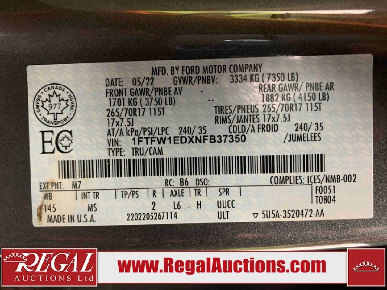 Live Online Bidding: This vehicle will be available for bidding over the internet, visit www.RegalAuctions.com to register.