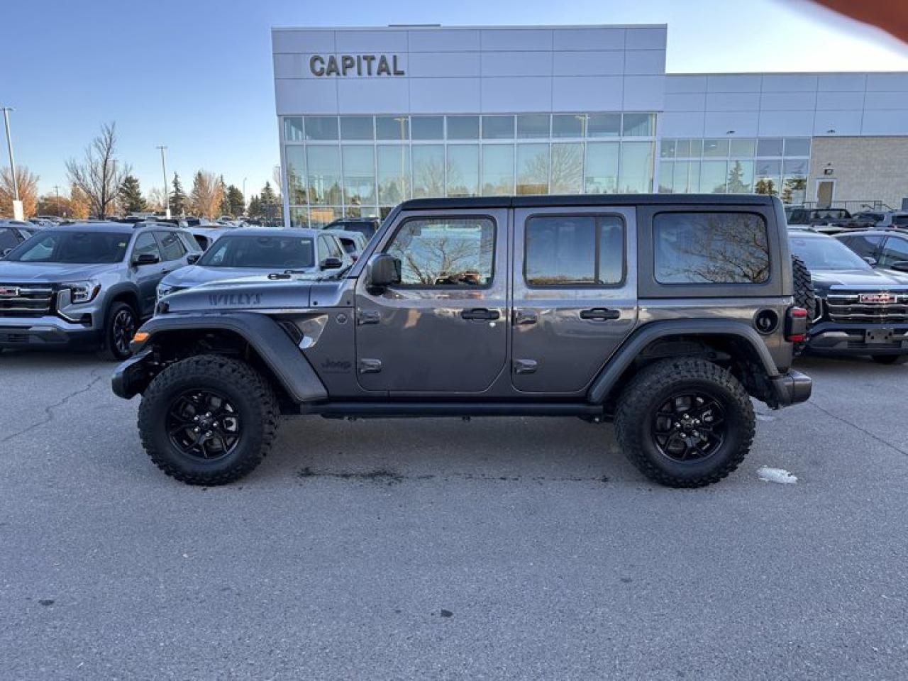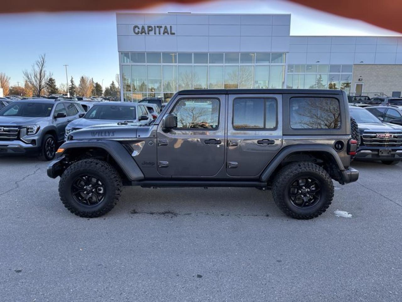 Recent Arrival!Ask for the Internet Department for more information or book your test drive today! Call 403-256-4960 for fast answers at your fingertips! Disclaimer: All prices are plus taxes. See dealer for details. AMVIC Licensed Dealer # B2020028.2024 Wrangler 8-Speed Automatic 4WD Wrangler Willys, Pentastar 3.6L V6 VVT, 8-Speed Automatic, 4WD, 156 KM/H Max Speed Tire Calibration, 240 Amp Alternator, 4 Auxiliary Switches, 4- and 7-Pin Wiring Harness, 4-Wheel Drive Swing Gate Decal, 4.10 Rear Axle Ratio, 7" In-Cluster Colour Display, Advanced Brake Assist, Air Filtering, Automatic High-Beam Headlamp Control, Black Injection-Moulded Rear Bumper, Blind-Spot/Rear Cross-Path Detection, Class II Hitch Receiver, Convenience Group, Conventional Front Differential, Corning Gorilla Glass, Dana M210 Wide HD Tube Front Axle, Dana M220 Wide Rear Axle, Daytime Running Lights w/LED Accents, Deep-Tint Sunscreen Windows, Dual-Zone A/C w/Automatic Temperature Control, E-Locker Rear Axle, Enhanced Adaptive Cruise Control, Forward Collision Warn/Active Braking, Front Heated Seats, Front License Plate Bracket, Gloss Black Sport Grille, Heated Steering Wheel, LED Fog Lamps, LED Reflector Headlamps, LED Taillamps, MOPAR All-Weather Floor Mats, Moulded-In-Colour Bumper w/Gloss Black, Off-Road Plus Mode, Park-Sense Rear Park Assist System, Power Heated Exterior Mirrors, Power Windows w/Front 1-Touch Down, Premium-Wrapped Steering Wheel, Quick Order Package 24W Willys, Remote Keyless Entry, Remote Proximity Keyless Entry, Rock Protection Sill Rails, Rubicon Highline Flare, Safety Group, Security Alarm, SiriusXM Satellite Radio, SOS Call & Roadside Assistance Call, Speed-Sensitive Power Locks, Sun Visors w/Illuminated Vanity Mirrors, Universal Garage Door Opener, Wheels: 17" x 7.5" Painted Black, Willy's Suspension, Willys, Willys Hood Decal.