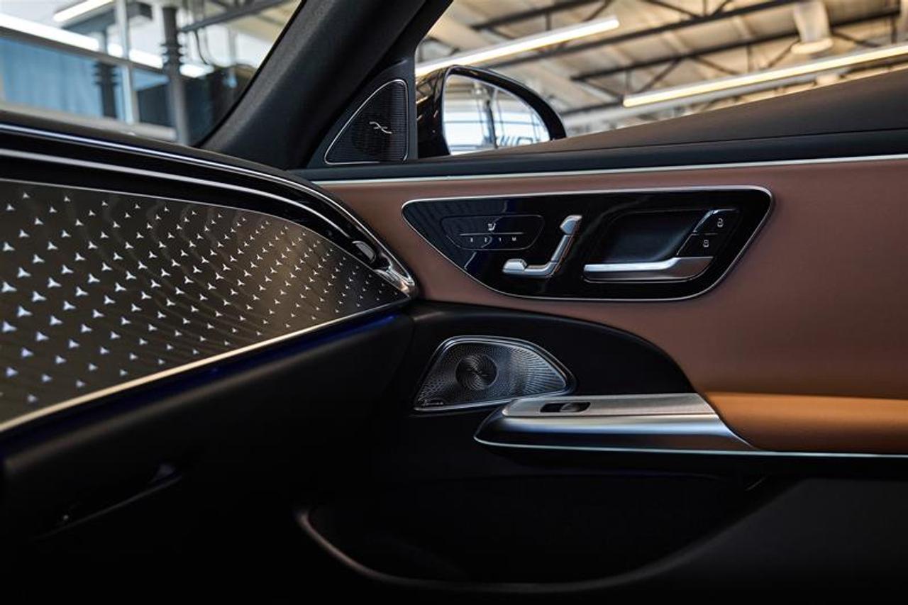 Black open-pore wood ash backlit trim with Mercedes-Benz pattern