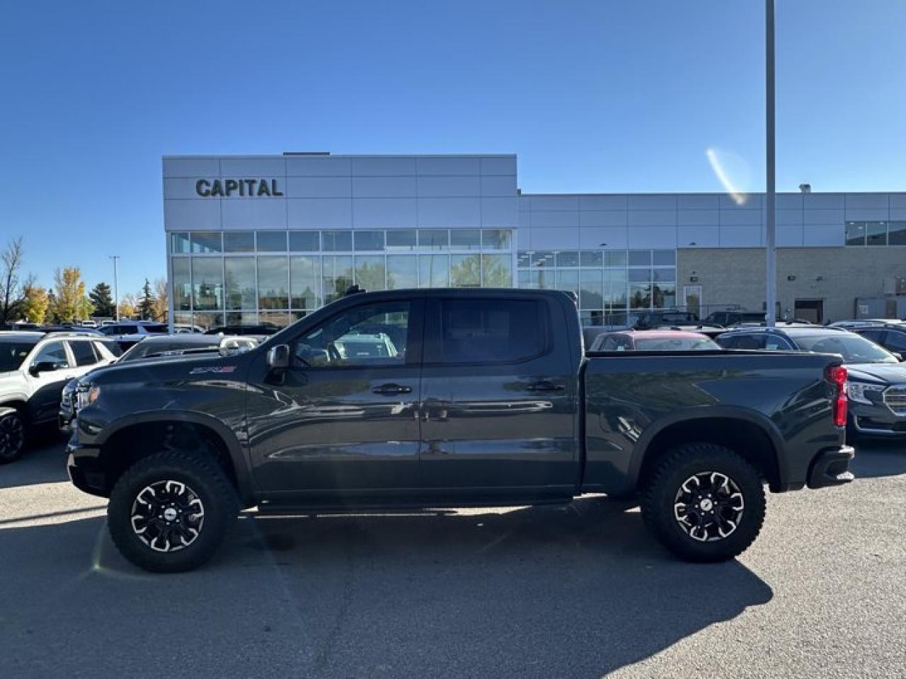This Chevrolet Silverado 1500 delivers a Turbocharged Diesel I6 3.0L/ engine powering this Automatic transmission. ENGINE, DURAMAX 3.0L TURBO-DIESEL I6 (305 hp [227 kW] @ 3750 rpm, 495 lb-ft of torque [671 Nm] @ 2750 rpm) (Includes (KW5) 220-amp alternator and (K05) engine block heater.) (STD), ZR2 Suspension Package High-Performance lifted suspension with Multimatic DSSV dampers, Wireless Phone Projection for Apple CarPlay and Android Auto.*This Chevrolet Silverado 1500 Comes Equipped with These Options *Wipers, front rain-sensing, Windows, power rear, express down, Window, power, rear sliding with rear defogger, Window, power front, passenger express up/down, Window, power front, drivers express up/down, Wi-Fi Hotspot capable (Terms and limitations apply. See onstar.ca or dealer for details.), Wheels, 18" x 8.5" (45.7 cm x 21.6 cm) aluminum machined face with Black Painted spokes and Oxide Gold painted outer ring accents, Wheelhouse liners, rear, Wheel, 18" aluminum spare, USB Ports, rear, dual, charge-only.* Stop By Today *For a must-own Chevrolet Silverado 1500 come see us at Capital Chevrolet Buick GMC Inc., 13103 Lake Fraser Drive SE, Calgary, AB T2J 3H5. Just minutes away!