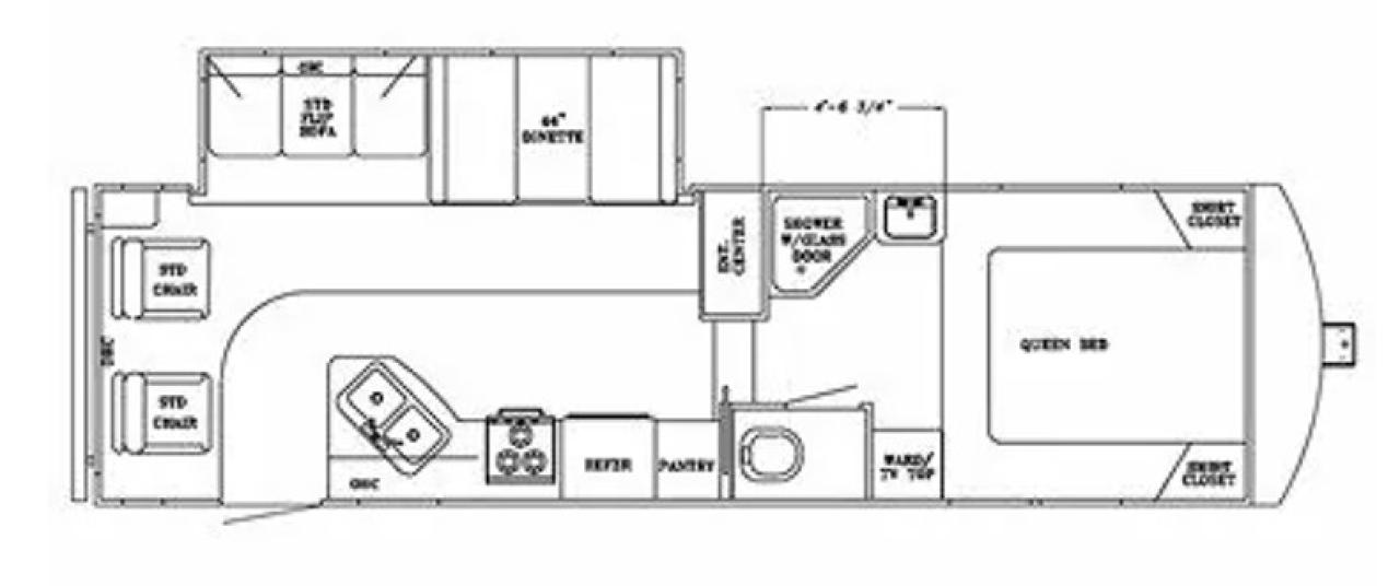 Power Landing Gear & Power Rear Stabilizer Jacks, Slam Latch Baggage Doors, Black Tank Flush, Ducted Air Conditioning, Heated Holding Tanks, Exterior Shower, 15" Aluminum Wheels, Rear Ladder, Exterior Speakers, Power Awning, Entry Assist Handle, 6 Gal Gas/Elec Water Heater, 2 Swivel Rockers, Sofa Bed, Free Standing Table & Chairs, Living Room TV, Microwave, 3 Burner Range, 6 Cu Ft Fridge, Pleated Window Shades, Queen Island Bed, Monitor Panel, Fantastic Fan in Bedroom