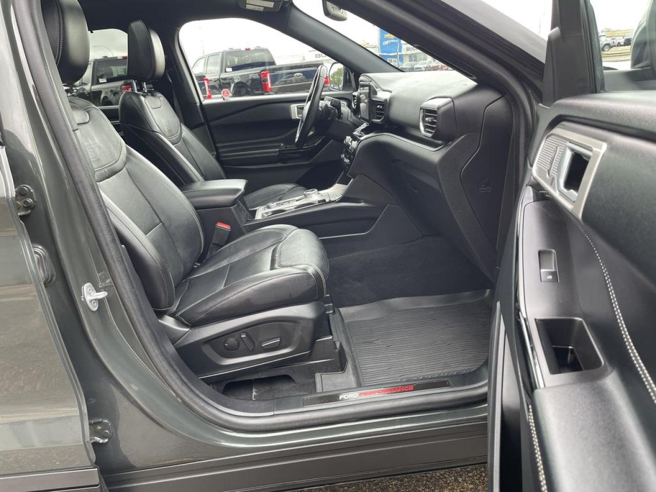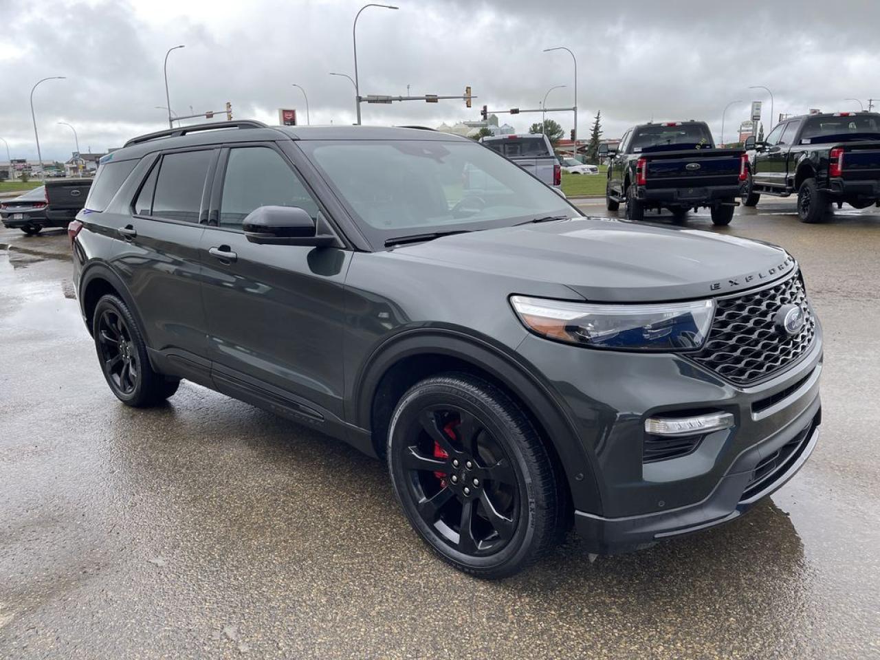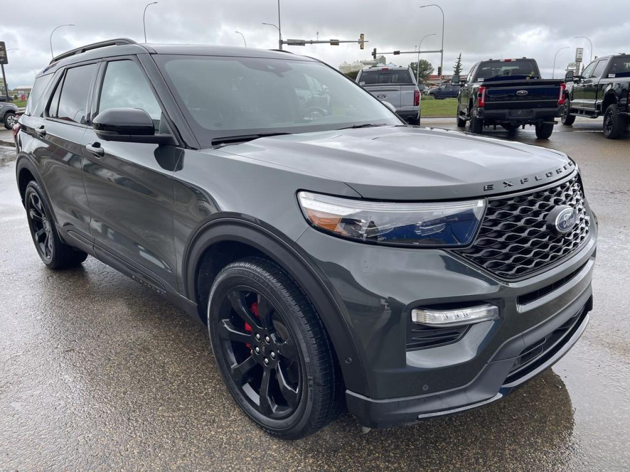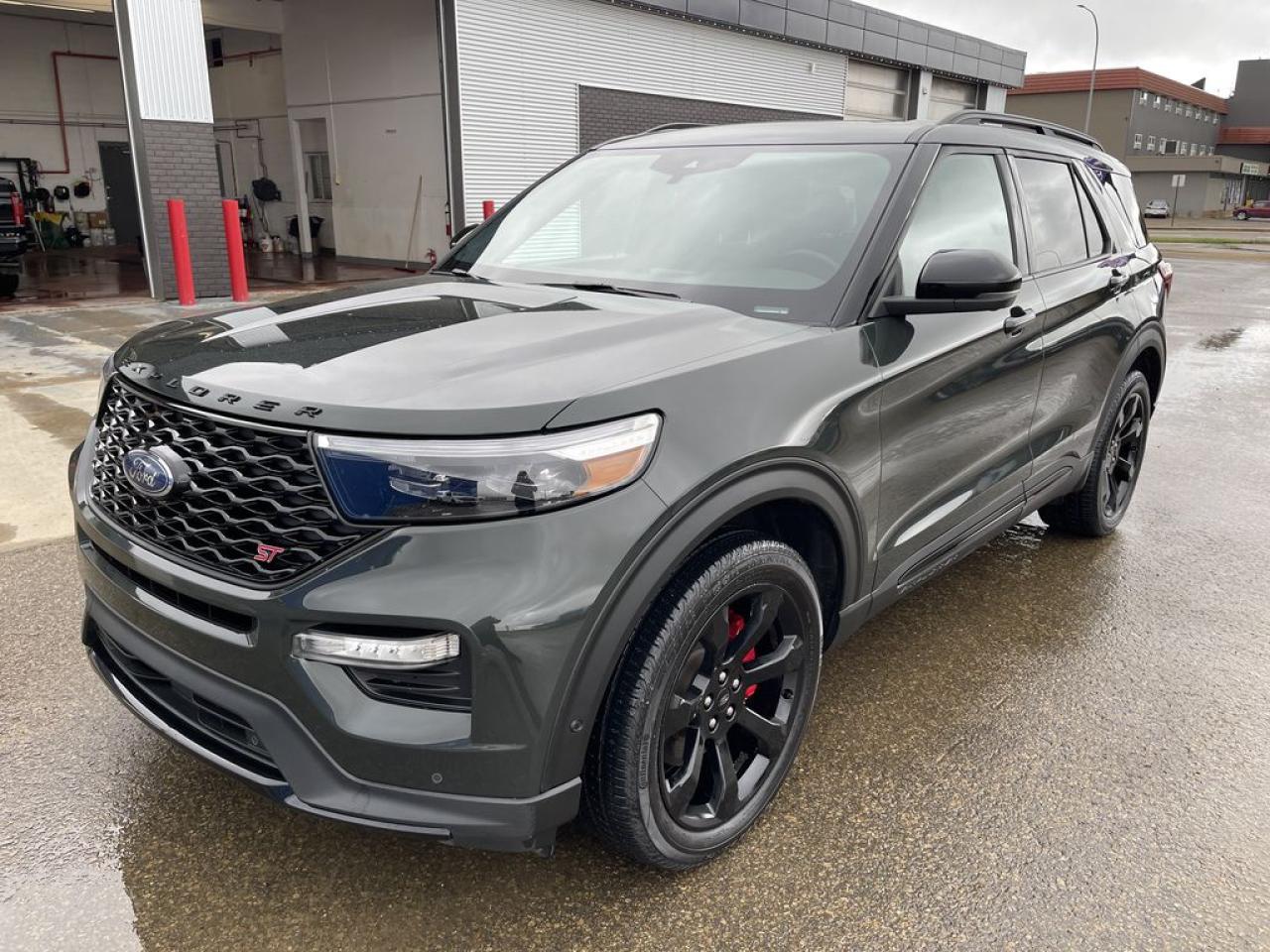 THE PRICE YOU SEE, PLUS GST. GUARANTEED! APPLE CARPLAY/ANDROID AUTO COMPATABLE! 3.0 LITER ECOBOOST, 10 SPEED AUTO, ST TRIM(401a), ST STREET PKG, TWIN PANEL MOONROOF, HEATED/VENTED FRONT SEATS, HEATED STEERING WHEEL, CLASS IV TRAILER TOW PKG, SYNC 3. The 2022 Ford Explorer ST is a high-performance variant of Fords popular midsize SUV lineup, equipped with a robust 3.0-liter EcoBoost V6 engine that delivers impressive power and acceleration. This turbocharged engine produces around 400 horsepower and 415 lb-ft of torque, enabling the Explorer ST to achieve brisk acceleration and confident highway cruising. The vehicle features sport-tuned suspension, upgraded brakes, and a performance-oriented all-wheel-drive system to enhance handling and stability, especially during spirited driving. The ST Street Package further elevates the SUVs sporty appeal by adding visual enhancements such as unique exterior accents, upgraded wheels, and interior details like sport seats and exclusive trim elements. Inside, the Explorer ST offers a modern, driver-focused cockpit with advanced technology, including a large touchscreen infotainment system, premium audio, and driver assistance features. Overall, the 2022 Ford Explorer ST with the 3.0-liter V6 and ST Street Package combines powerful performance, aggressive styling, and modern amenities, making it an attractive choice for enthusiasts seeking a versatile yet sporty SUV.Do you want to know more about this vehicle, CALL, CLICK OR COME ON IN!*AMVIC Licensed Dealer; CarFax and Full Mechanical Inspection Included.