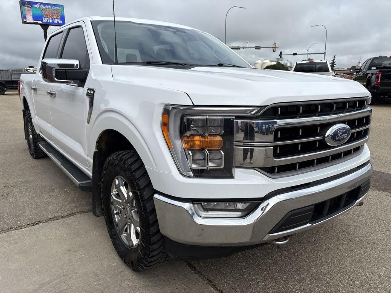 THE PRICE YOU SEE, PLUS GST. GUARANTEED!APPLE CARPLAY/ANDROID AUTO COMPATABLE! 3.5 LITER ECOBOOST, 10 SPEED AUTO, LARIAT TRIM(501a), TWIN PANEL MOONROOF, INTERIOR WORK SURFACE, LARIAT CHROME APPEARANCE PKG, SYNC 4 , HEATED/VENTED LEATHER SEATS. The 2022 Ford F-150 Lariat with the 3.5-liter EcoBoost V6 engine and the 501A Equipment Group offers a compelling combination of performance, luxury, and advanced features. The 3.5L EcoBoost engine delivers robust power, typically producing around 400 horsepower and 500 lb-ft of torque, providing strong towing and hauling capabilities suitable for both work and recreational needs. The 501A package enhances the truck with a suite of premium features, including upgraded interior materials, advanced technology, and convenience options such as a larger touchscreen infotainment system with SYNC 4, navigation, and a premium sound system. The Chrome Appearance Package adds aesthetic enhancements, featuring chrome accents on the grille, mirror caps, door handles, and side steps, giving the truck a more refined and upscale look. Inside, the Lariat trim is known for its plush leather seats, dual-zone automatic climate control, and driver-assist features like Ford Co-Pilot360, making it both comfortable and safe. Overall, this configuration of the F-150 combines powerful performance, luxury touches, and stylish exterior details, making it a versatile choice for drivers seeking a capable and refined pickup.Do you want to know more about this vehicle, CALL, CLICK OR COME ON IN!*AMVIC Licensed Dealer; CarFax and Full Mechanical Inspection Included.