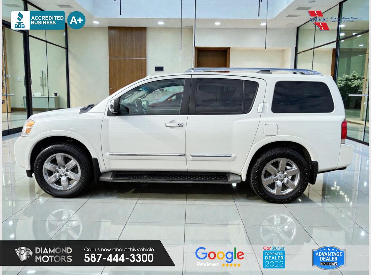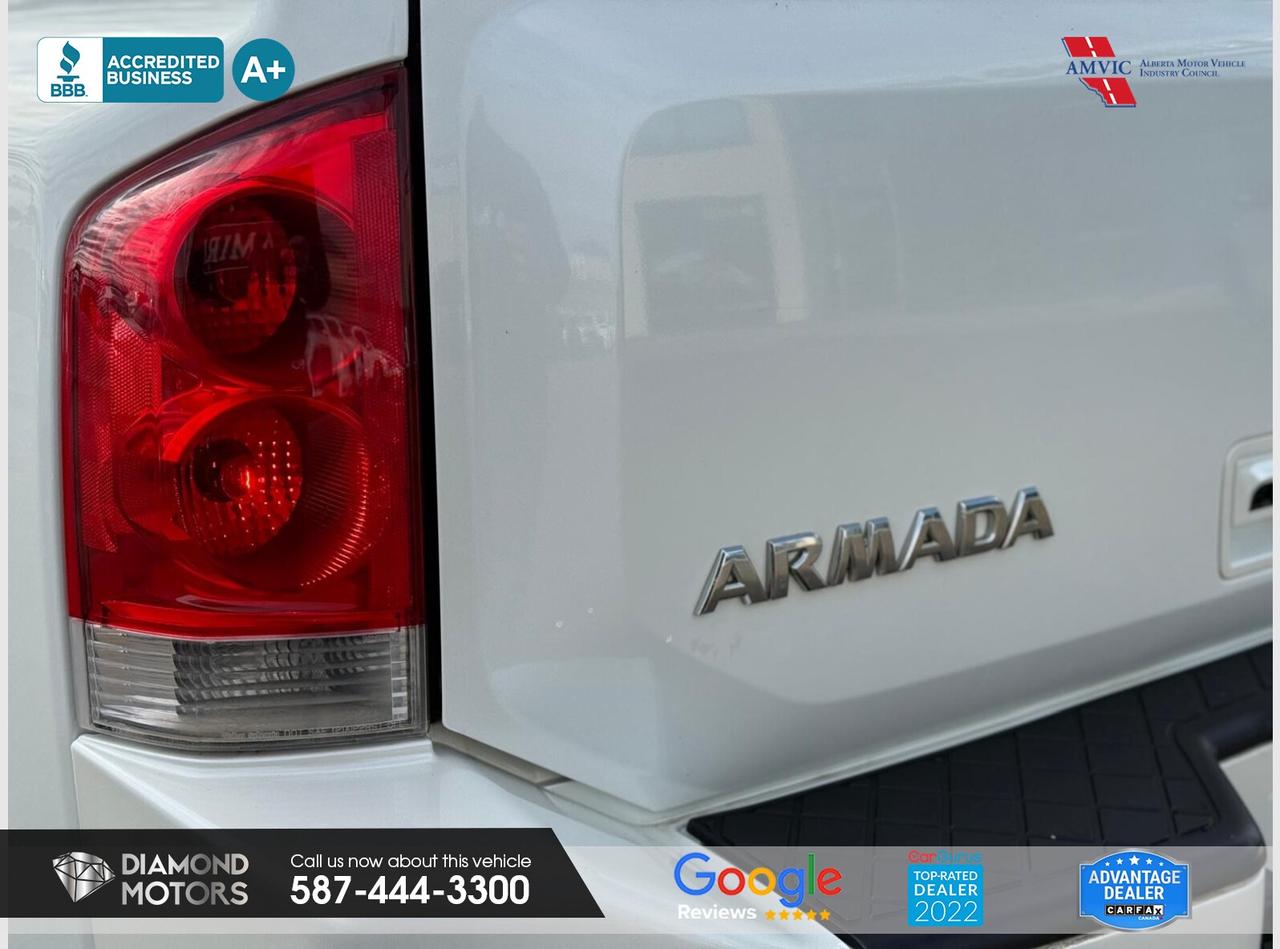 Now Available: 2014 Nissan Armada PLATINUM 4WD White has 290,655 KM on it. 5.6L 8 Cylinder Engine engine, 4x4, Automatic transmission, 7 Seater passengers, on special price for $9,900.00.