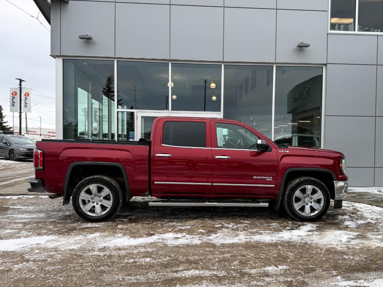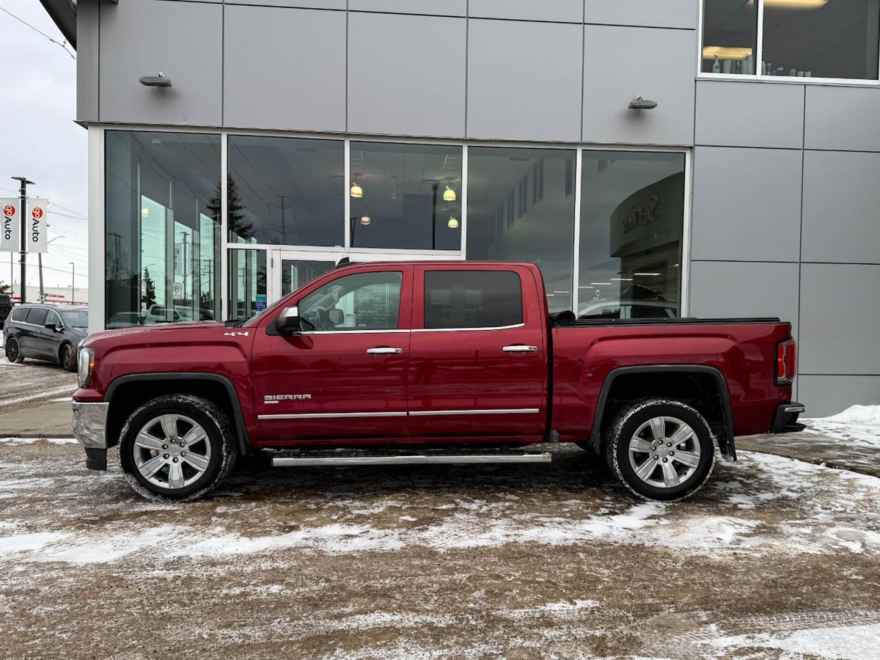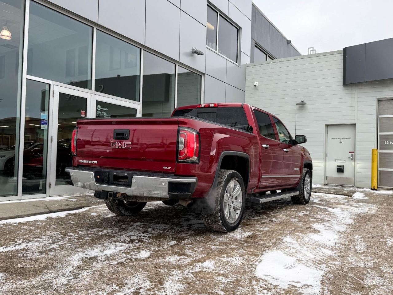 Experience power, comfort, and versatility with this pre-owned 2018 GMC Sierra 1500 SLT 4WD Crew Cab in striking Red. Powered by a robust 5.3L EcoTec3 V8 EAssist engine and equipped with heavy-duty suspension, rear locking differential, and trailering equipment, this truck is built to tackle any task. Enjoy premium features like heated leather seats, dual-zone automatic climate control, a 10-way power driver seat, LED cargo lighting, and a premium 6-speaker audio system with SiriusXM. Advanced convenience includes remote start, power windows with driver express, and a 110-volt AC outlet. Safety and connectivity are top-of-mind with OnStar, GMC Connected Services, a rearview camera, and modern electronic stability controls. Whether it's work or play, this Sierra combines rugged capability with refined styleready for your next adventure today! Contact us to test drive this outstanding truck.Go Mazda is a AMVIC licenced buisnessClean CarFax
