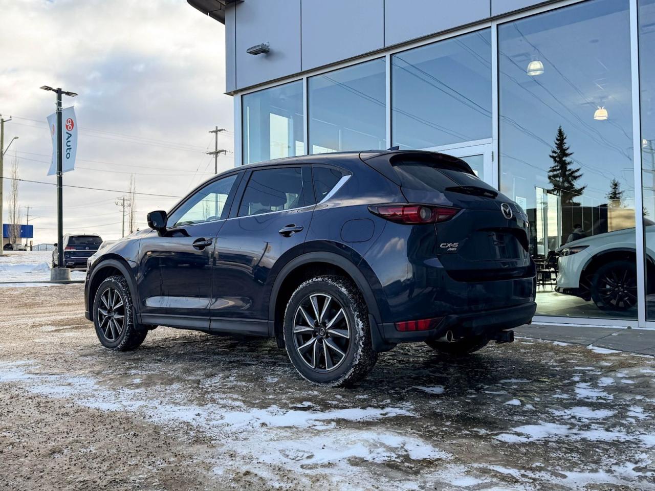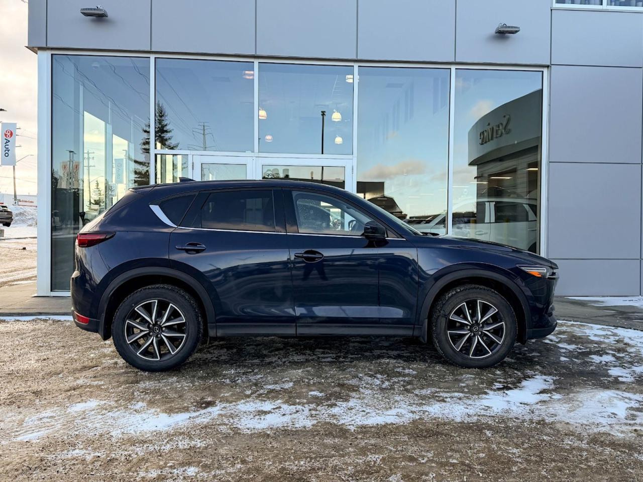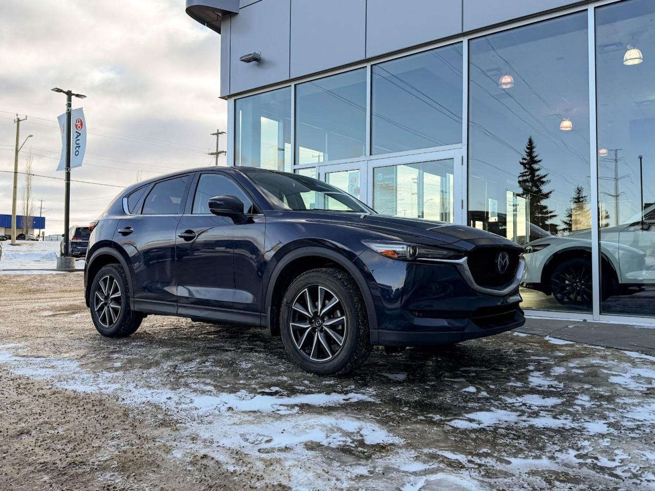 Discover the perfect blend of style, performance, and luxury with this pre-owned 2018 Mazda CX-5 GT AWD in sleek Deep Crystal Blue Mica. Powered by a 2.5L SKYACTIV-G 4-cylinder engine paired with a smooth 6-speed automatic transmission, it delivers responsive handling and efficient fuel economy. Enjoy added confidence year-round with automatic full-time AWD.Inside, indulge in heated leather front seats, dual-zone automatic climate control, and a premium Bose audio system with navigationall designed for comfort and convenience. Advanced safety features include blind-spot monitoring, rear collision warning, and a rearview camera for peace of mind on every drive.With its refined exterior featuring 19" machined alloy wheels, LED headlights, and a power liftgate, this CX-5 GT is as practical as it is stylish. Dont miss your chance to own a versatile SUV that elevates every journeycontact us today to schedule your test drive!Vehichle has a $2519 claim on the Carfax history repportGo Mazda is a AMVIC licenced buisness