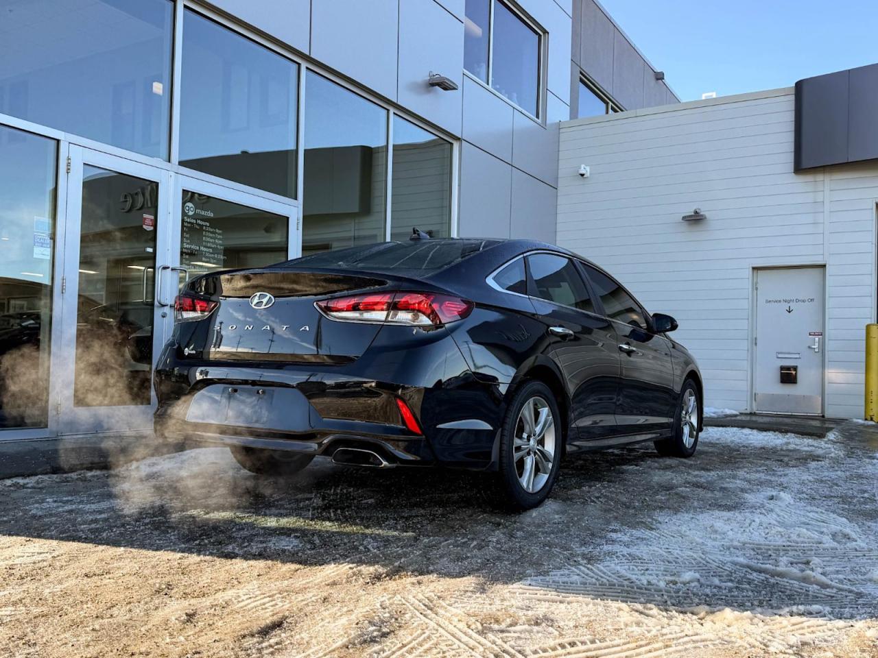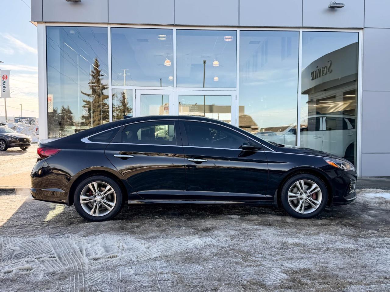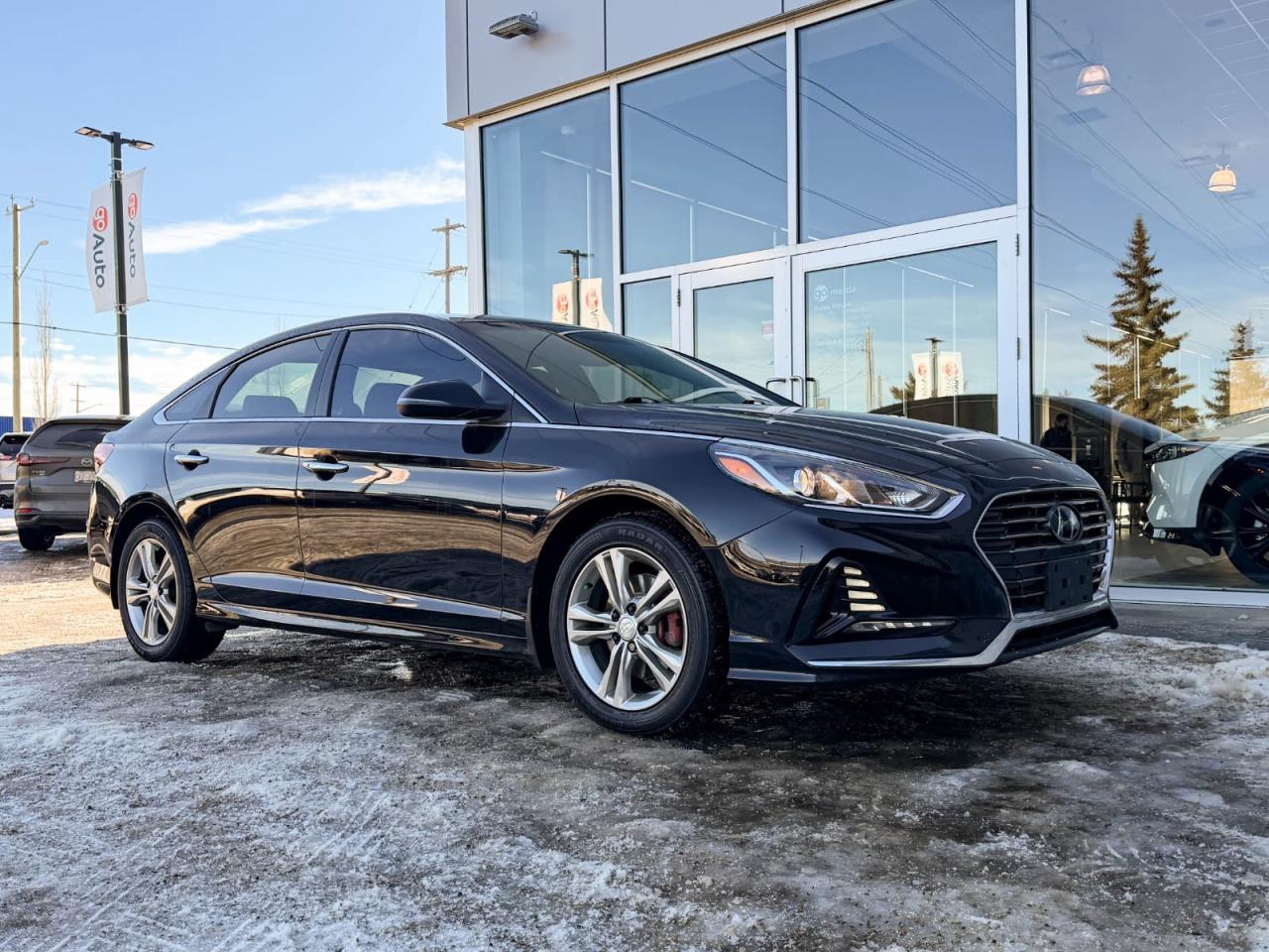 Discover exceptional value and style with this pre-owned 2019 Hyundai Sonata Preferred in sleek Black on Black. Powered by a reliable 2.4L I4 GDI engine paired with a smooth 6-speed automatic transmission featuring SHIFTRONIC, this sedan delivers 185HP of confident performance and fuel efficiency.Enjoy luxurious comfort with heated leather front bucket seats, dual-zone automatic climate control, and a spacious interior loaded with premium materials like leatherette door trims and piano black accents. The advanced infotainment system includes a 7-inch touchscreen, AM/FM/XM/MP3 audio, Bluetooth wireless streaming, and steering wheel-mounted voice and audio controls for seamless connectivity on the go.Drive with confidence thanks to key safety features such as blind spot warning, rear collision warning, multiple airbags, electronic stability control, and all-speed ABS with traction control. Additional conveniences include power windows and locks, smart key with push-button start, and a rearview camera.Stylish 17-inch aluminum alloy wheels, projector beam headlights with LED daytime running lights, heated power side mirrors, and a sunroof add to the Sonatas refined appeal. Whether commuting or cruising, this well-equipped Sonata Preferred combines comfort, technology, and safety in one sleek package.Schedule your test drive today and experience the perfect balance of value and sophistication!Go Mazda is an AMVIC licensed business.Please note: this vehicle has been registered in the province of British Columbia and is showing a CarFax incident in the amount of $2,630.61