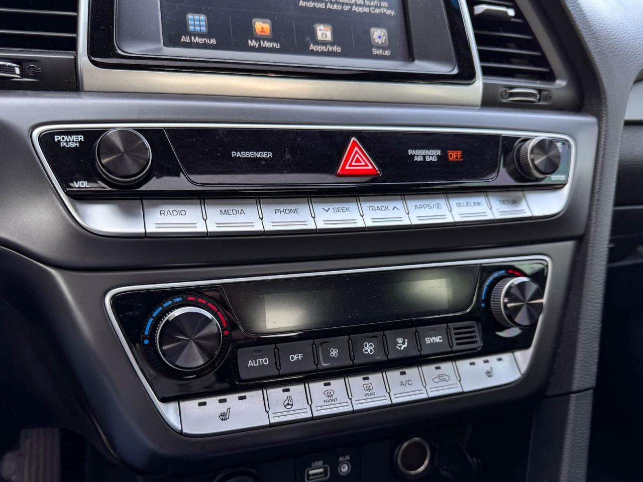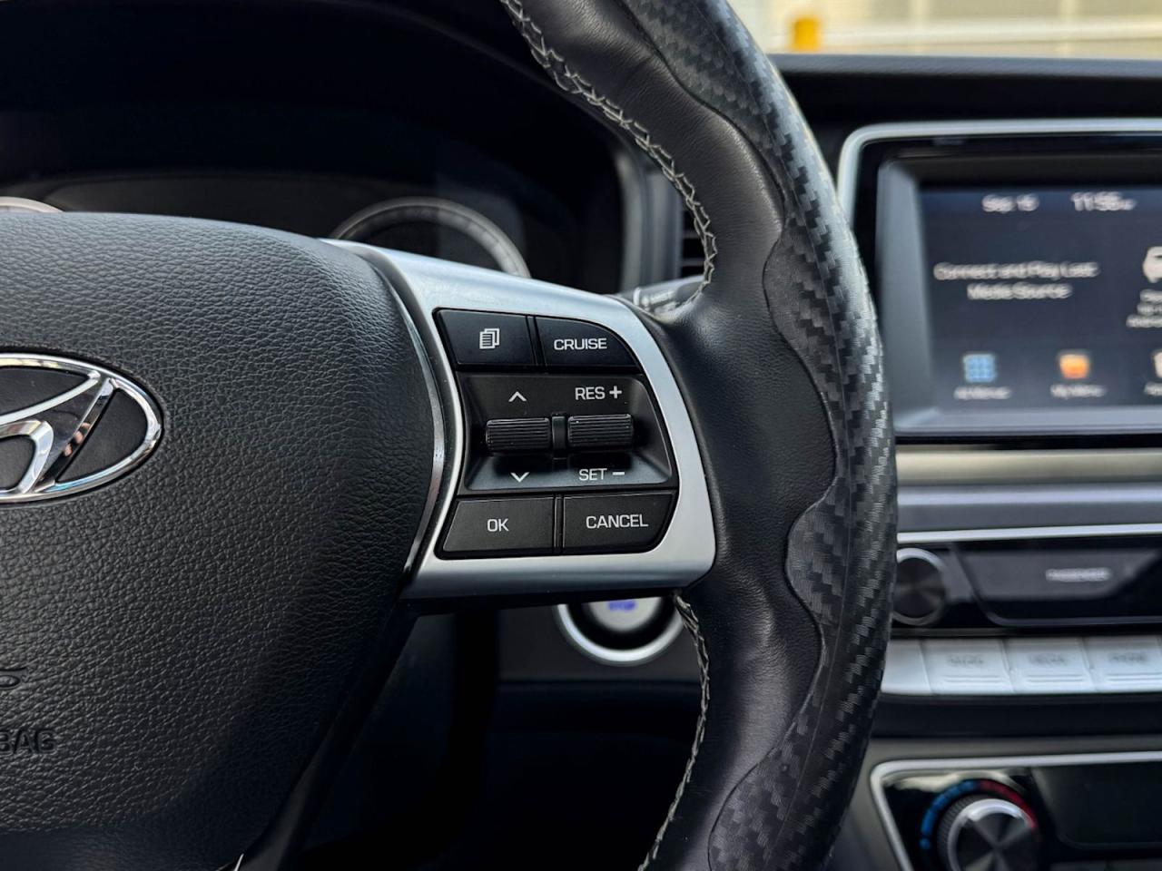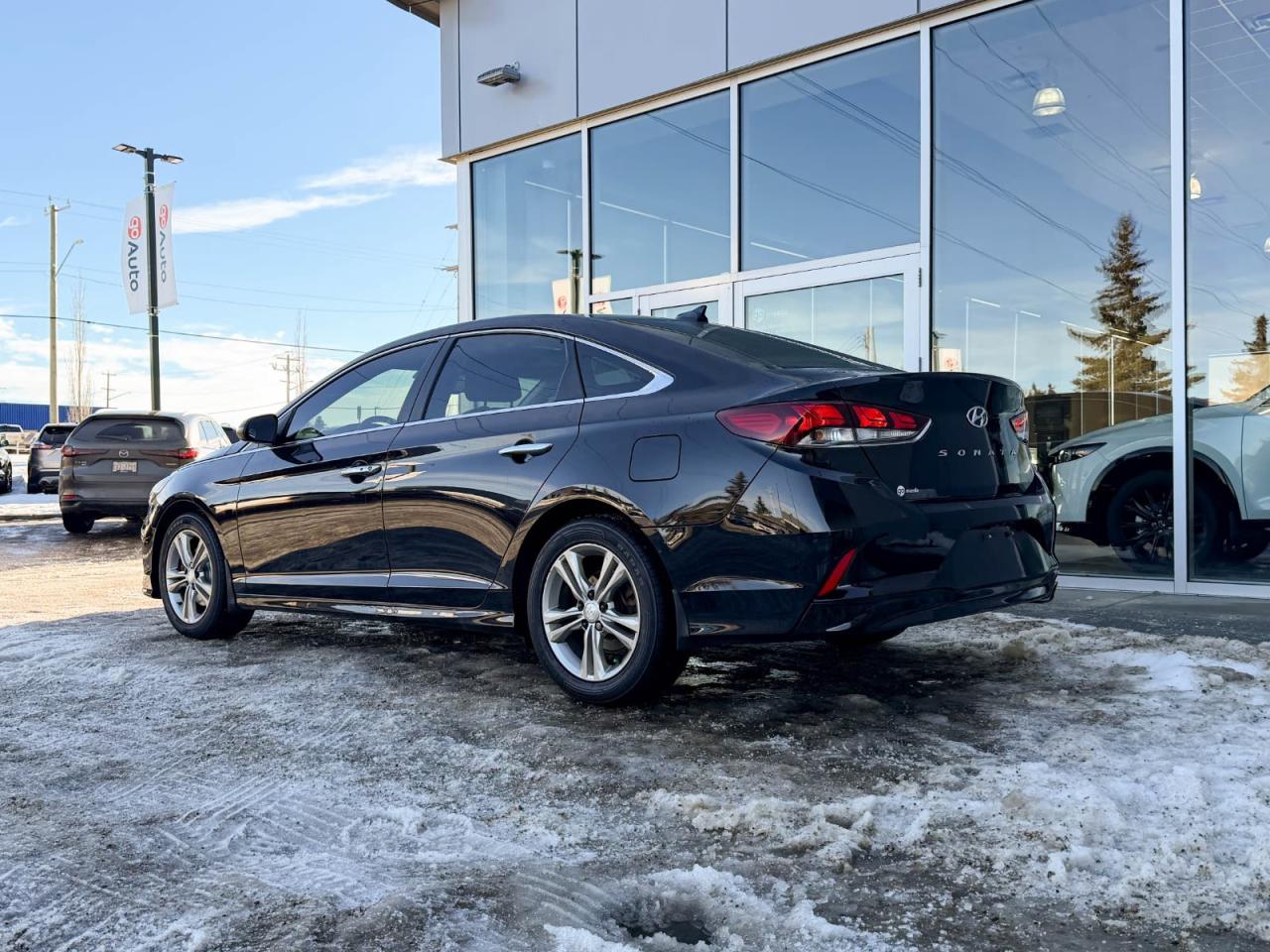 Discover exceptional value and style with this pre-owned 2019 Hyundai Sonata Preferred in sleek Black on Black. Powered by a reliable 2.4L I4 GDI engine paired with a smooth 6-speed automatic transmission featuring SHIFTRONIC, this sedan delivers 185HP of confident performance and fuel efficiency.Enjoy luxurious comfort with heated leather front bucket seats, dual-zone automatic climate control, and a spacious interior loaded with premium materials like leatherette door trims and piano black accents. The advanced infotainment system includes a 7-inch touchscreen, AM/FM/XM/MP3 audio, Bluetooth wireless streaming, and steering wheel-mounted voice and audio controls for seamless connectivity on the go.Drive with confidence thanks to key safety features such as blind spot warning, rear collision warning, multiple airbags, electronic stability control, and all-speed ABS with traction control. Additional conveniences include power windows and locks, smart key with push-button start, and a rearview camera.Stylish 17-inch aluminum alloy wheels, projector beam headlights with LED daytime running lights, heated power side mirrors, and a sunroof add to the Sonatas refined appeal. Whether commuting or cruising, this well-equipped Sonata Preferred combines comfort, technology, and safety in one sleek package.Schedule your test drive today and experience the perfect balance of value and sophistication!Go Mazda is an AMVIC licensed business.Please note: this vehicle has been registered in the province of British Columbia and is showing a CarFax incident in the amount of $2,630.61