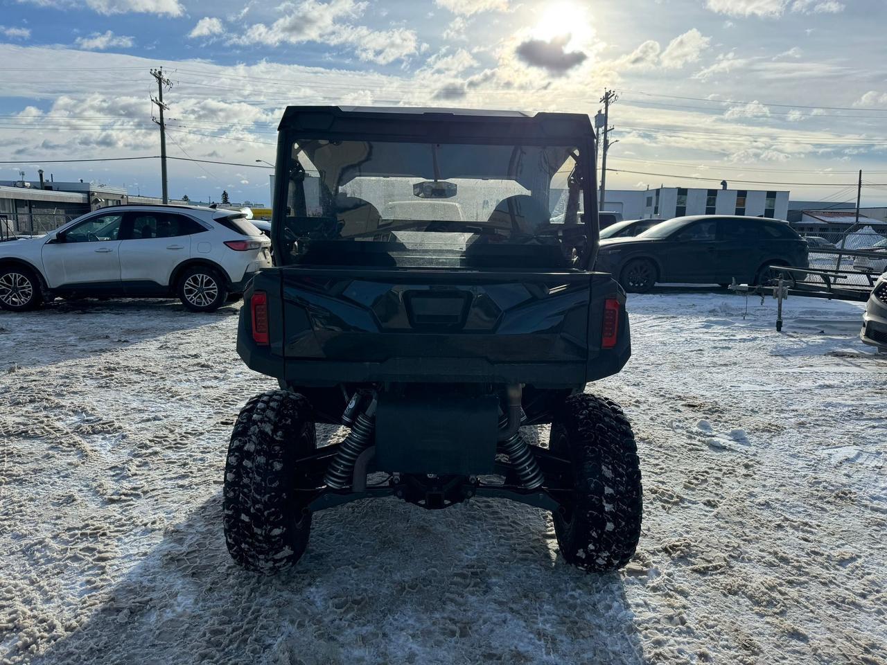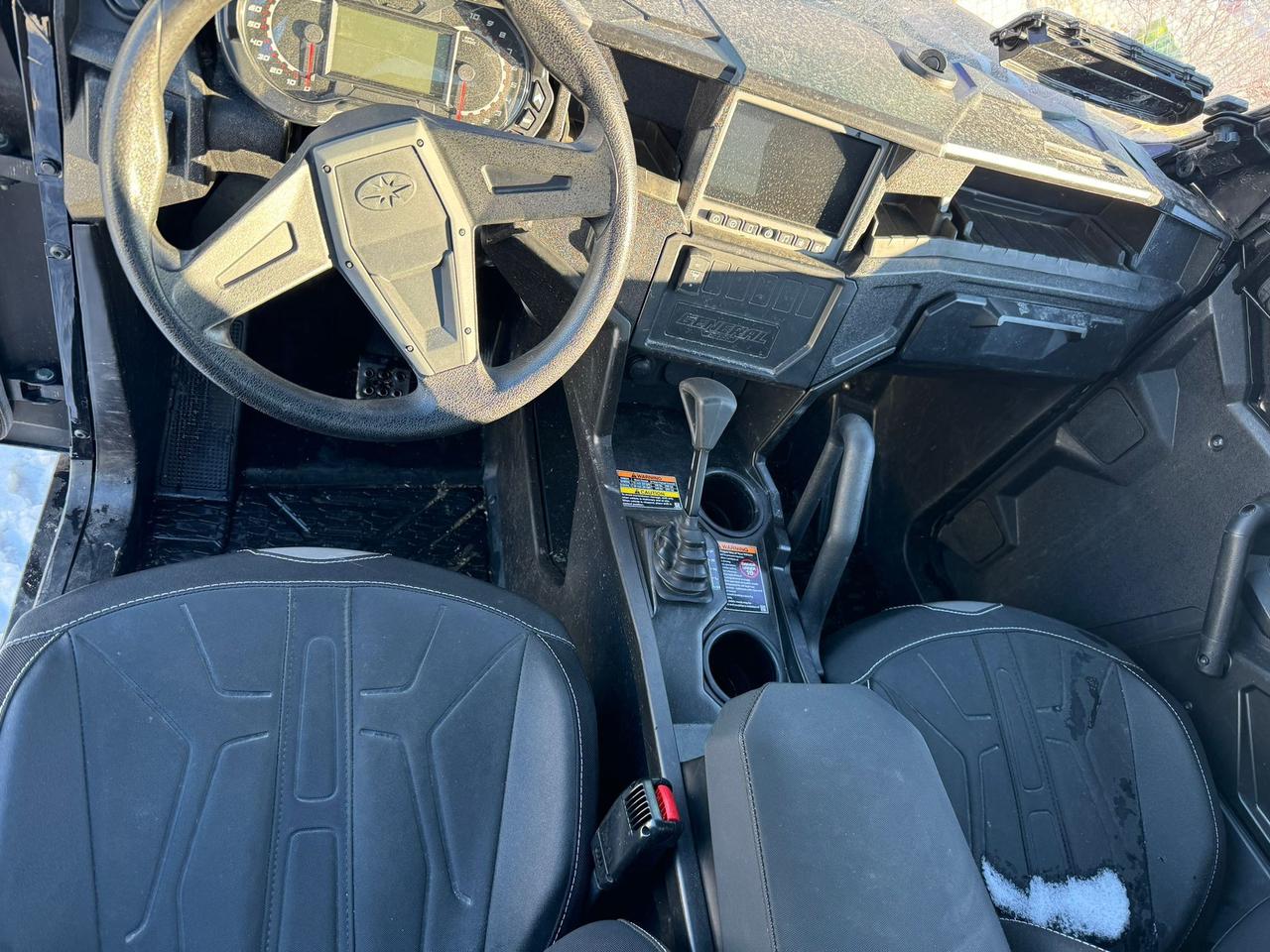 Stay comfortable in any weather with soft enclosed windows and a built-in heating system to keep you warm during colder rides. The spacious cab features premium bucket seats, a tilt steering wheel, and a large LCD display with Polaris Ride Command for enhanced navigation and connectivity.