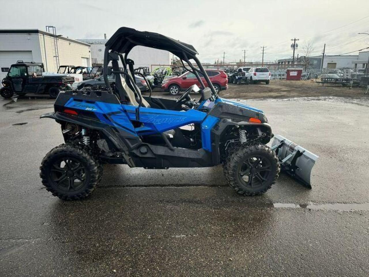 With the addition of a snow plow, the 2021 ZForce 800 becomes a reliable winter workhorse, capable of clearing driveways, paths, and other snow-covered areas efficiently. The vehicle's high ground clearance, dual A-arm suspension, and sturdy 26-inch off-road tires allow it to tackle snowy and rough terrain with stability. The comfortable bucket seats, digital display, and adjustable steering wheel enhance the driving experience, while the 3,000-lb winch adds further utility for pulling or lifting tasks. Combining practicality with off-road performance, the ZForce 800 with a plow is ideal for those seeking a capable, all-season side-by-side that handles both trail adventures and winter tasks.