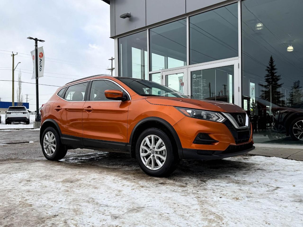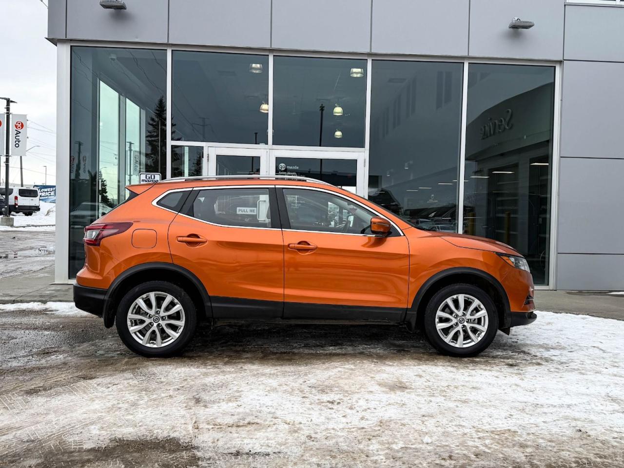 Experience versatility and style with this pre-owned 2021 Nissan Qashqai SV AWD in sleek Monarch Orange Pearl Metallic. Powered by a 2.0L DOHC 16-Valve I4 engine paired with smooth Xtronic CVT, it delivers confident all-wheel drive performance for any road condition. Enjoy premium comfort with leather-appointed heated front seats, a spacious cabin for five, and advanced tech features like NissanConnect Navigation, a 7-inch touchscreen, and a 360-degree camera system. Safety is prioritized with 10 airbags, blind spot warnings, lane departure prevention, and forward collision mitigation. With 19" alloy wheels and a full tank of fuel, this Qashqai is ready for your next adventure. Drive smarter and in styleschedule your test drive today!Go Mazda is an AMVIC licensed businessThis vehicle is showing a CarFax incident in the amount of $6,072.00 and $4,849.04
