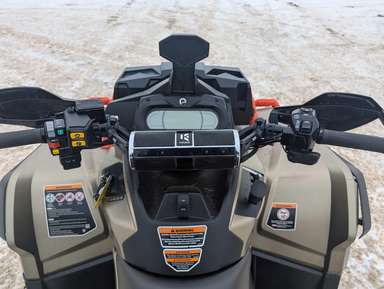 Equipped with a Rad Relocate Kit to keep the engine cool during even the most demanding rides, a winch for added pulling power, and an aftermarket exhaust for an upgraded sound and performance, the Outlander 1000R XMR delivers the ultimate off-road experience. Additional features include hand warmers for those colder rides, a sound bar speaker to bring the party to the trails, hand guards for added protection, and a snorkel kit to make sure you can power through deep water and mud without missing a beat.