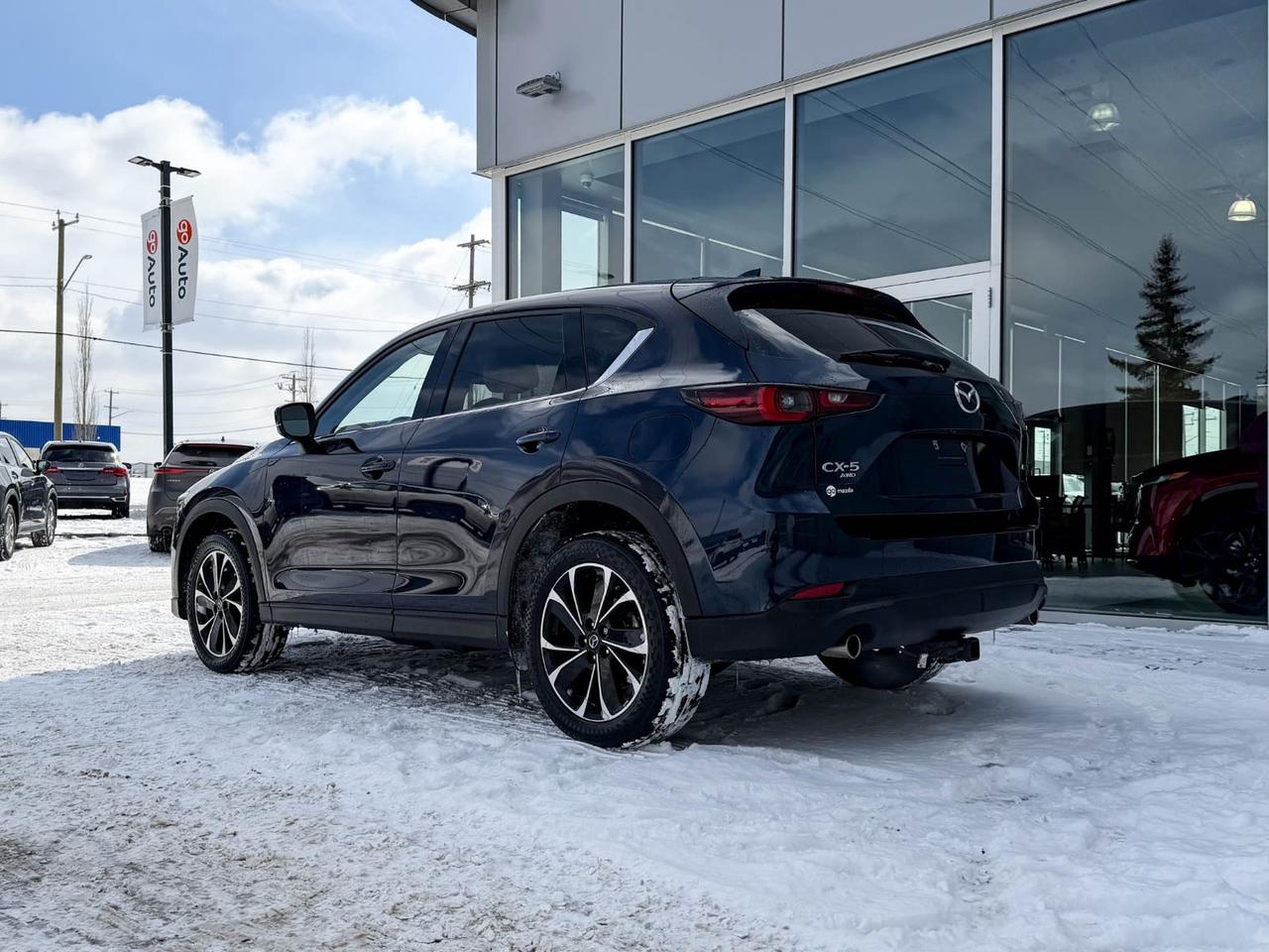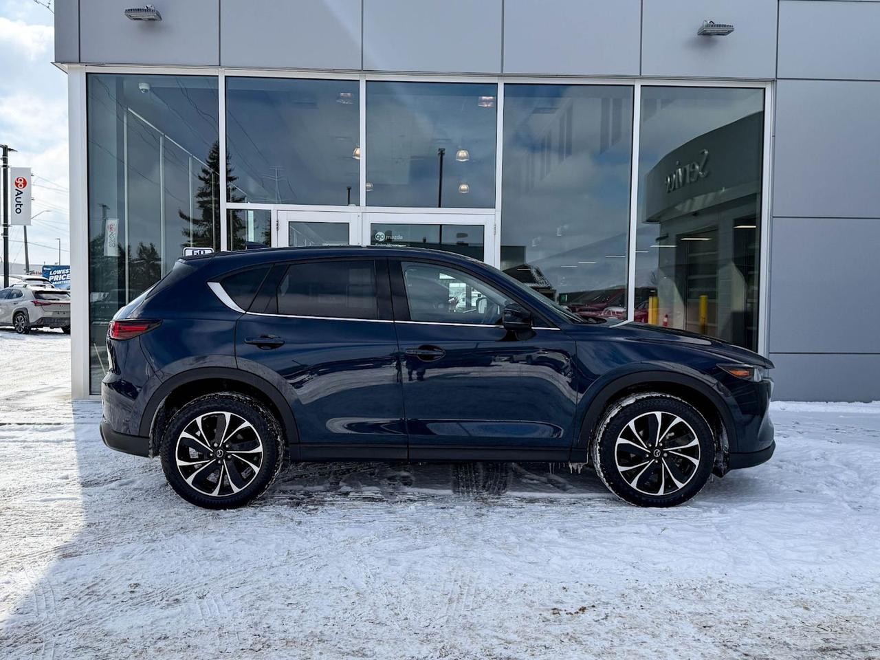 Discover the 2022 Mazda CX-5 GT AWD a pre-owned SUV that blends performance, luxury, and advanced technology seamlessly. Powered by a 2.5L SKYACTIV-G engine paired with a smooth 6-speed automatic transmission and all-wheel drive, it delivers confident handling in all conditions.Step inside to heated and ventilated leather seats, dual-zone climate control, and a premium Bose sound system paired with a 10.2-inch navigation display, keeping you connected and comfortable on every drive. Safety is paramount with features like lane departure prevention, forward collision mitigation, blind spot warnings, and a rear backup camera.With sleek 19" black alloy wheels, a power liftgate, and advanced driver aids including adaptive headlights and smart keyless entry, this CX-5 GT is a refined and capable companion for your journeys. Visit us today to experience this exceptional SUV firsthand!Go Mazda is an AMVIC licensed business.Clean CarFax