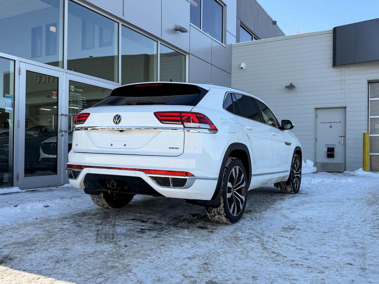 Experience sophistication and performance with this pre-owned 2022 Volkswagen Atlas Cross Sport Execline 3.6 FSI 4MOTION in pristine White! Powered by a robust 276 HP 3.6L V6 engine paired with an 8-speed automatic transmission, this AWD SUV delivers smooth control and confident handling.Step inside to heated and ventilated leather perforated sport seats, a feature-packed 8" touchscreen infotainment system with integrated navigation, and premium comfort with dual-zone automatic climate control. Safety is paramount with advanced systems like lane departure prevention, blind spot warning, forward collision mitigation, and a full suite of airbags.Benefit from convenience features including power liftgate, keyless entry with push-button start, multiple USB ports, wireless charging, and panoramic sunroof. With full-time AWD, hill descent control, and class III tow hitch, its ready for any adventure or daily drive.Dont miss out on this meticulously maintained 2022 Atlas Cross Sport Execline combining style, technology, and capability in one exceptional package. Visit Go Mazda today to experience it for yourself!Vehicle was previouusly registered in Ontario and QuebecGo Mazda is a AMVIC registered buisness