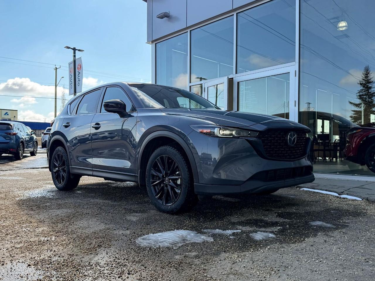Discover the perfect blend of style, performance, and advanced features with this pre-owned 2023 Mazda CX-5 Kuro Edition AWD in sleek Grey. Powered by a efficient 2.5L SKYACTIV-G engine paired with smooth 6-speed automatic transmission and full-time AWD, this SUV delivers confident handling in any condition. Inside, enjoy luxurious leather upholstery, heated front seats, and a 10.2-inch touchscreen with smart device mirroring for seamless connectivity. Safety is paramount with blind-spot monitoring, lane departure prevention, and forward collision mitigation. With 19-inch black alloy wheels and distinctive Kuro Edition styling, this CX-5 offers sporty sophistication on every drive. Drive home a well-equipped, stylish SUV ready for your next adventure today!Go Mazda is an AMVIC licensed businessClean CarFax