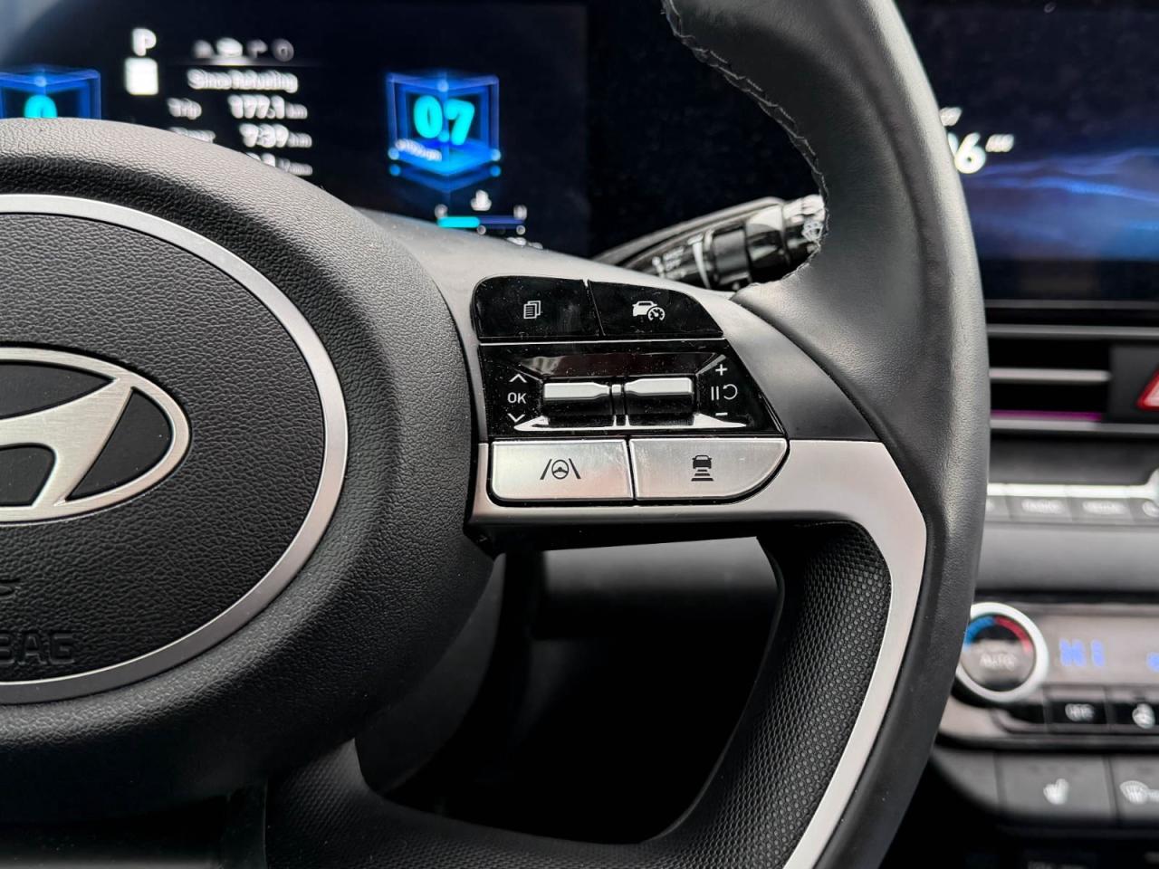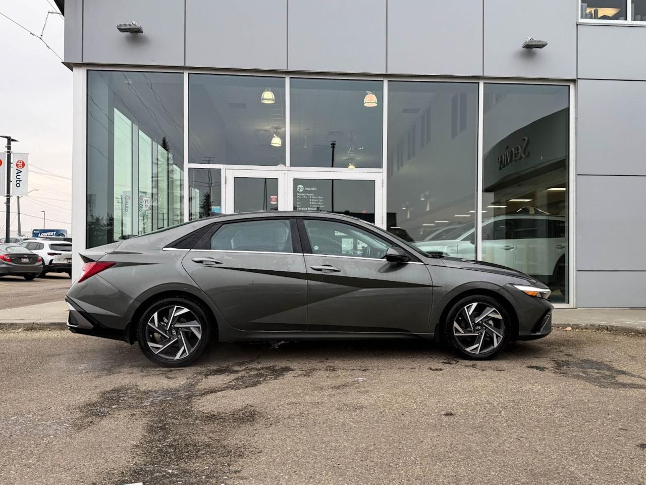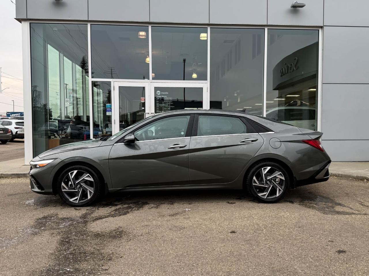Experience sophistication and efficiency with this pre-owned 2025 Hyundai Elantra Luxury IVT in sleek Gray with a refined Black interior. Powered by a smooth 2.0L MPI DOHC I4 engine paired with Intelligent Variable Transmission, this Elantra delivers responsive performance and excellent fuel economy.Step inside to enjoy luxurious heated leatherette seats, dual-zone automatic climate control, and a premium Bose audio system with an immersive 10.25-inch touchscreen featuring integrated navigation and smart device mirroring. Safety is paramount with advanced features like lane departure prevention, active blind spot system, and forward collision mitigation.Enjoy convenience with smart key push-button start, remote start, power windows, and a panoramic sunroof that lets the outside in. With 17" aluminum-alloy wheels and LED lighting, this Elantra Luxury combines style, comfort, and modern tech for your daily drive.Visit Go Mazda today to test drive this outstanding 2025 Hyundai Elantra Luxury IVT and elevate your driving experience!Go Mazda is an AMVIC licensed business.Clean CarFax
