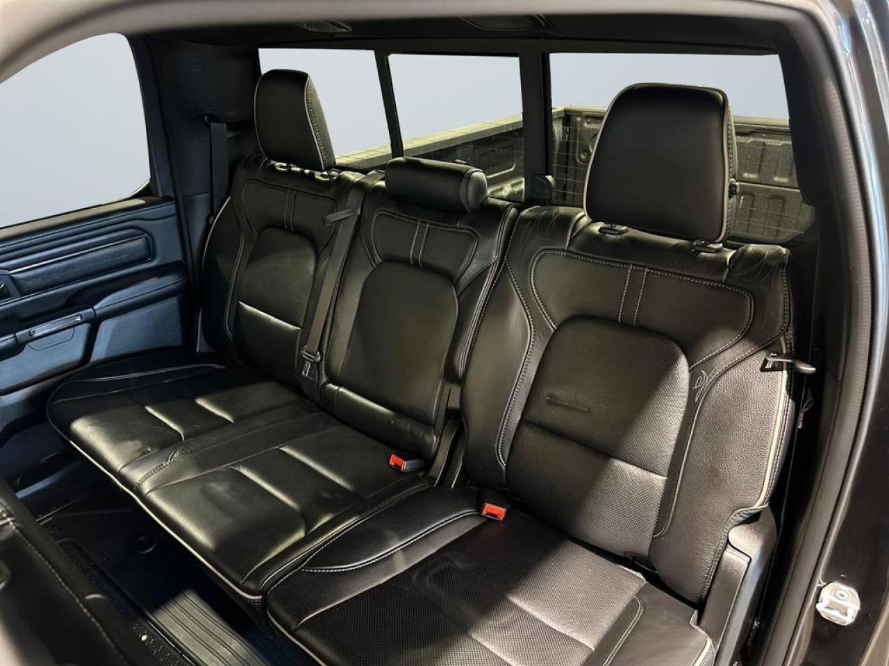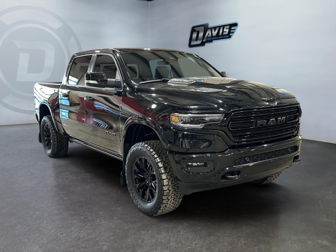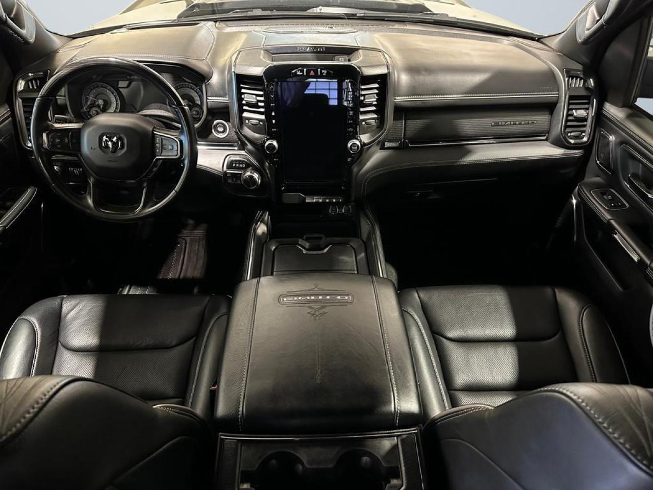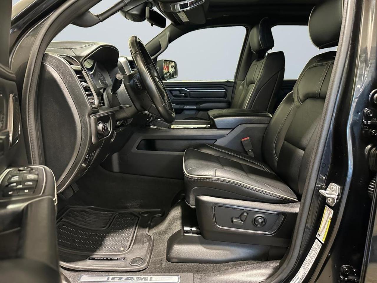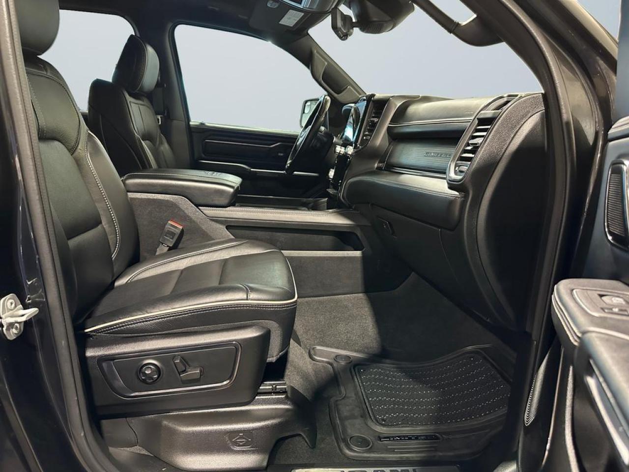 Our 1500's trim level is Limited. Upgrading to this ultra premium Ram 1500 Limited is an excellent choice as it comes fully loaded with active-level air suspension, full-leather heated and cooled seats, power running boards, exclusive aluminum wheels, chrome exterior accents, premium LED headlights, a leather heated steering wheel, and a huge 12 inch Uconnect touchscreen that is bundled with navigation, Apple CarPlay, Android Auto, SiriusXM, and 4G LTE. Additional upscale features include a premium Alpine stereo, power adjustable pedals and front seats, ParkSense sensors, proximity keyless entry, forward collision warning with active braking, a spray-in bed liner, power folding heated mirrors, and a rear step bumper to easily access your pickup's cargo area! This vehicle has been upgraded with the following features: Cooled Seats, Leather Seats, Power Running Boards, Premium Audio, Navigation, Android Auto, Apple CarPlay.
