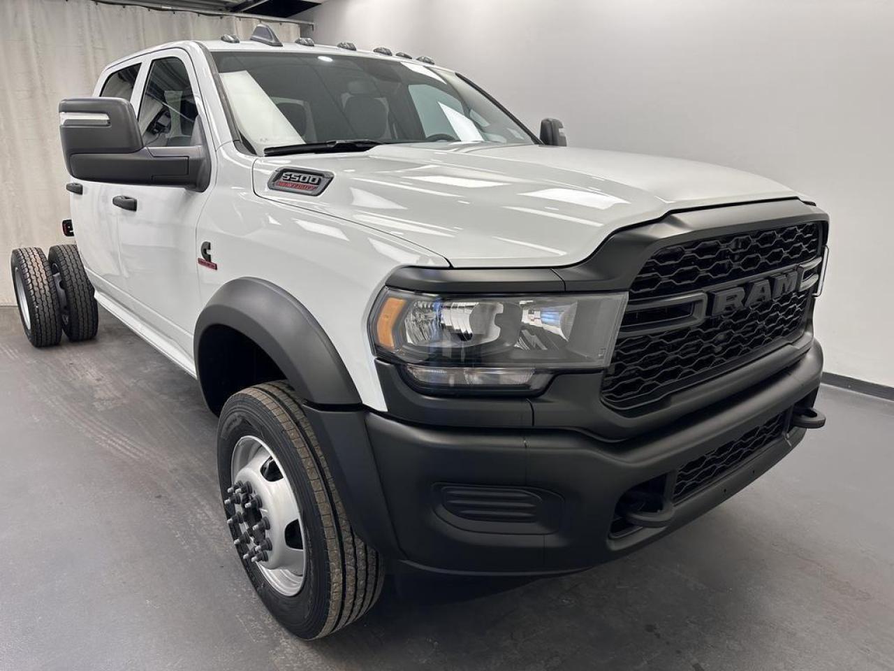 Our 5500HD Chassis Cab's trim level is Laramie. This Ram 5500HD Laramie features trailer braking control, a power-adjustable driver's seat with lumbar support, remote engine start, front and rear park assist, chrome-clad steel wheels and front floor carpets, and comes standard with heavy duty suspension, towing equipment including trailer sway control and a wiring harness, front and rear anti-roll bars, upfitter switches for mounting additional equipment, and front tow hooks. Additional equipment include an infotainment screen with Uconnect 5, a 9-speaker Alpine audio system, air conditioning, polished aluminum wheels, a rear power sliding window, interior sound insulation, cruise control with steering mounted buttons, and even more. This vehicle has been upgraded with the following features: Diesel Engine, Max Tow Package, Full-Size Spare Tire.