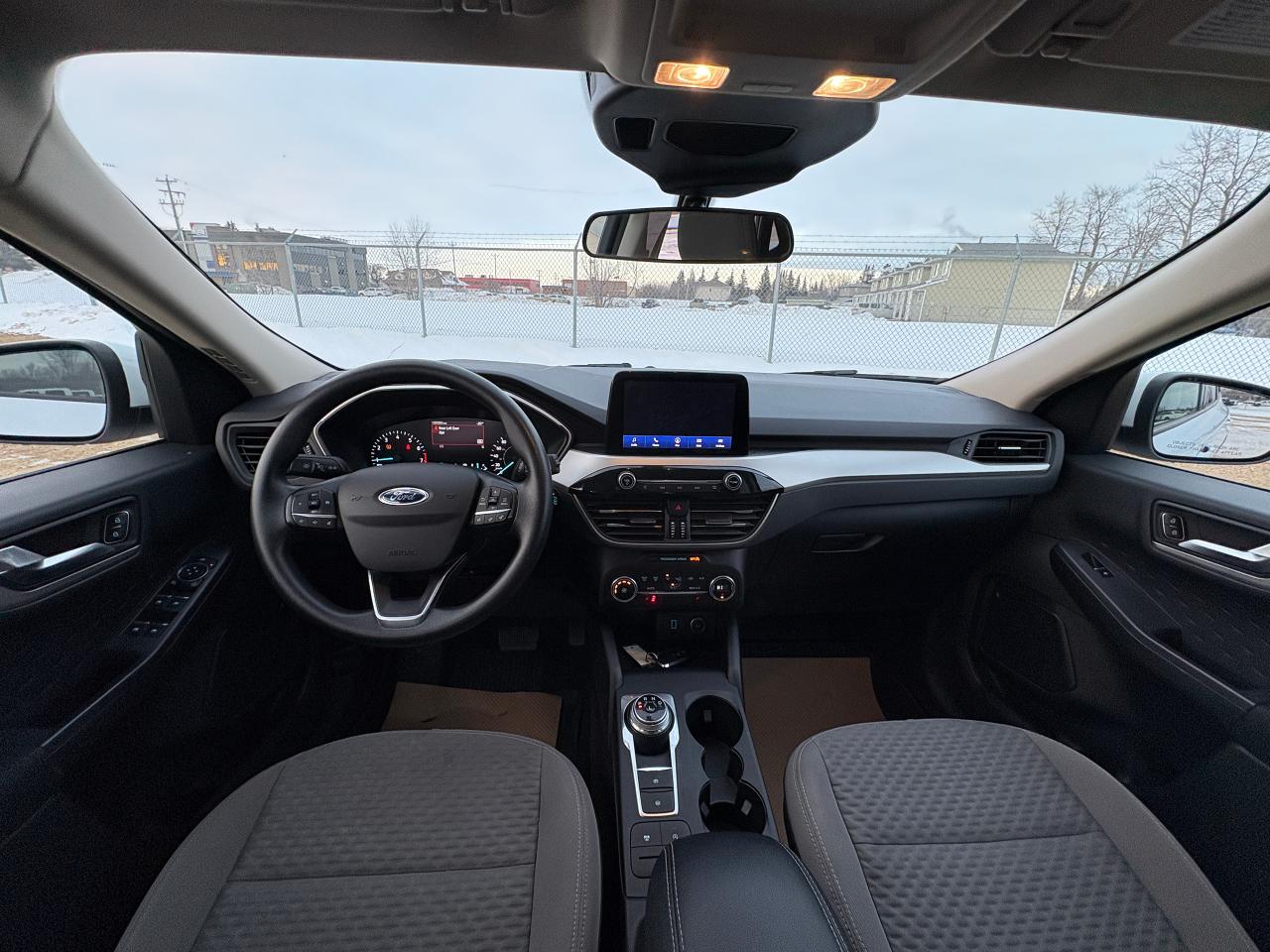 Inside, the Escape SE offers a comfortable and well-appointed cabin with heated unique cloth bucket seats, an 8-way power driver’s seat, full cloth headliner, automatic air conditioning, tilt-and-telescoping steering wheel, cruise control with steering-wheel controls, and a full floor console with covered storage. Interior storage is generous with door bins, concealed cargo storage, front and rear cupholders, rear seat armrest, and a 60/40 split-folding rear seat for added cargo flexibility.