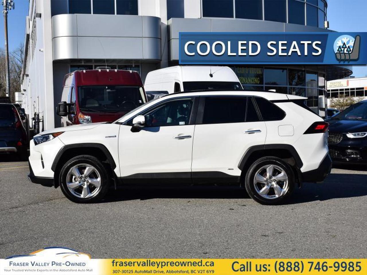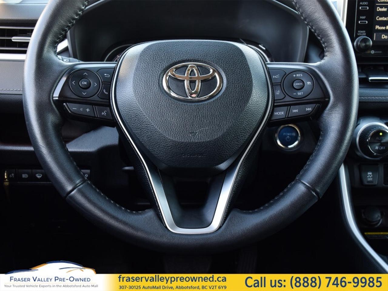 Our RAV4's trim level is Hybrid Limited. Stepping up to this top of the line all-wheel drive RAV4 Hybrid Limited is an excellent choice as it comes fully loaded with SofTex leather heated and cooled seats, a leather heated steering wheel, power sunroof, Toyota's Smart Key system with push button start, a larger 8 inch touchscreen with Entune Audio Premium 3.0, Apple CarPlay, Android Auto, wireless device charging and exclusive aluminum wheels. Additional features include a birds-eye-view camera, a power drivers seat with memory settings, rear heated seats, LED headlights and fog lights, heated power mirrors, hands free power liftgate, Toyota Safety Sense 2.0, dynamic radar cruise control, automatic highbeam assist, blind spot monitoring with rear cross traffic alert, parking assist and lane keep assist with lane departure warning plus so much more. This vehicle has been upgraded with the following features: Leather Seats, Sunroof, Cooled Seats, Wireless Charging, Heated Steering Wheel, Power Liftgate, Heated Rear Seats.