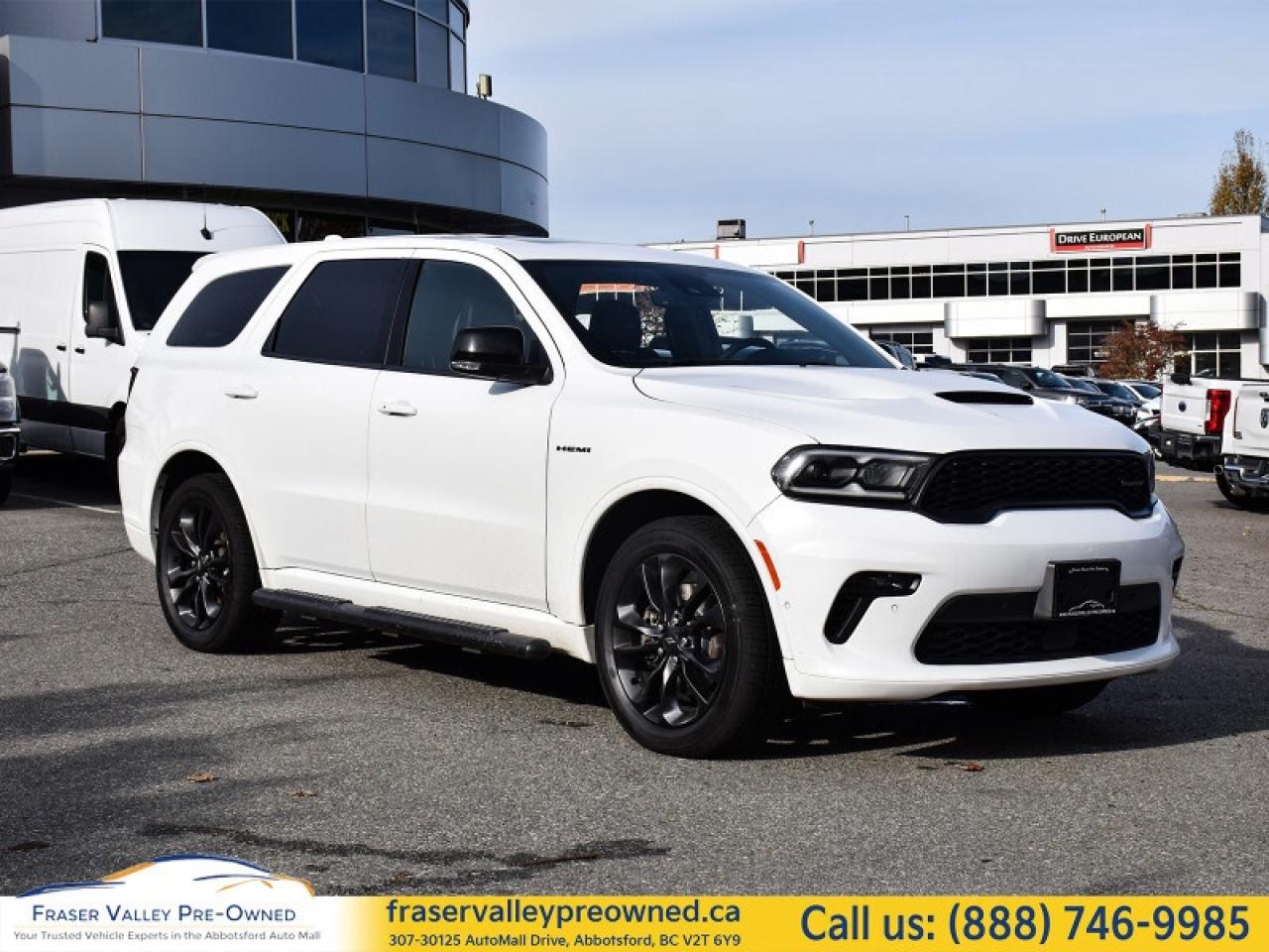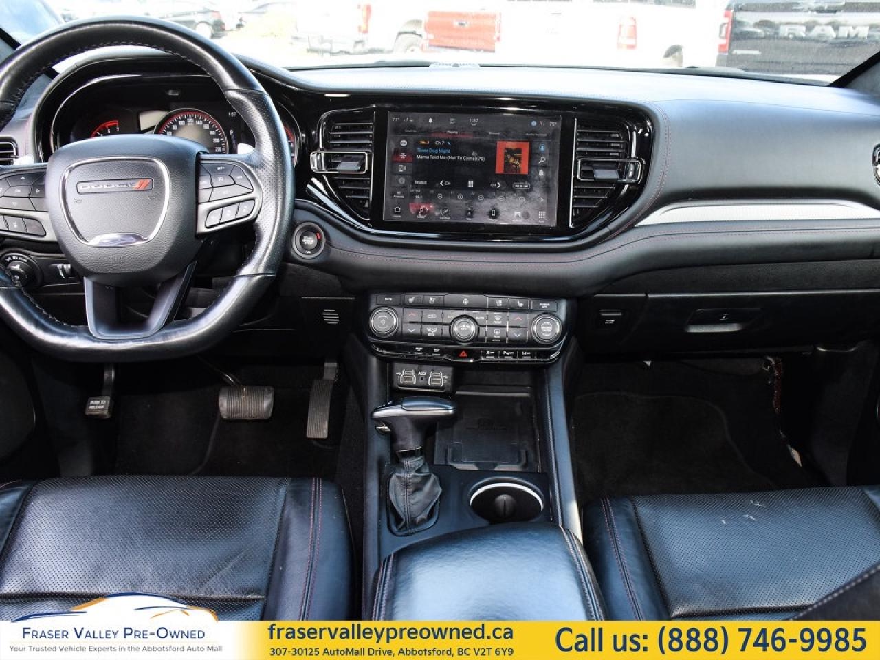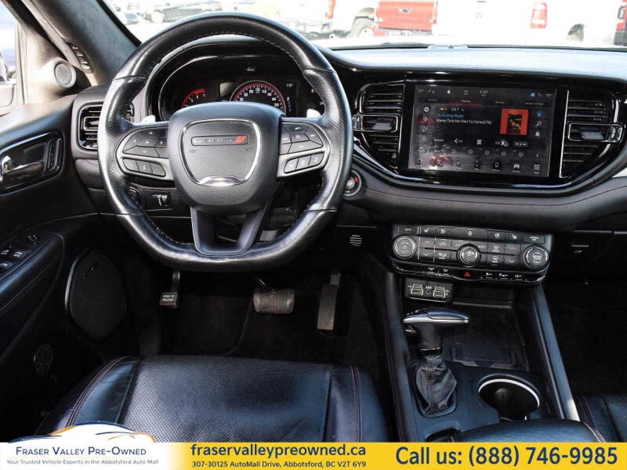 Fraser Valley Pre-Owned is proud to present this very sexy 2023 Dodge Durango R/T Plus AWD Blacktop Package – a bold, seven-passenger performance SUV that perfectly blends muscle, comfort, and technology.