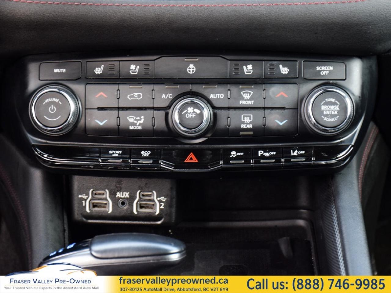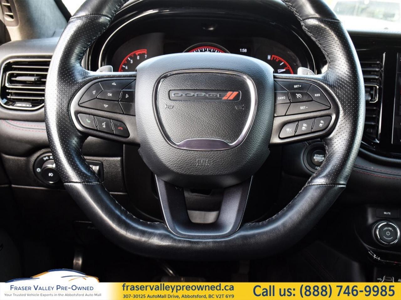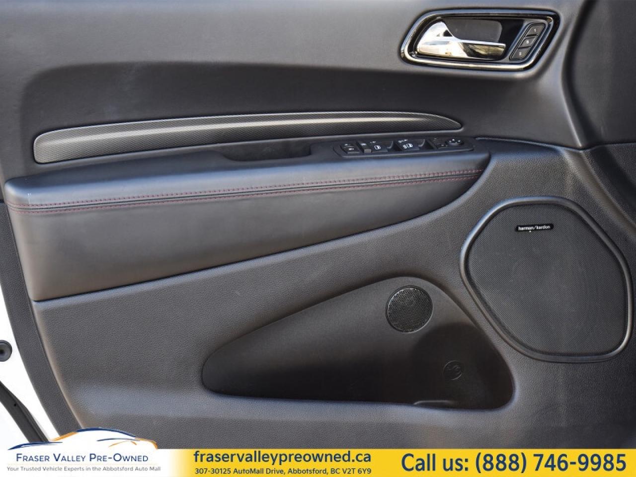Fraser Valley Pre-Owned is proud to present this very sexy 2023 Dodge Durango R/T Plus AWD Blacktop Package – a bold, seven-passenger performance SUV that perfectly blends muscle, comfort, and technology.