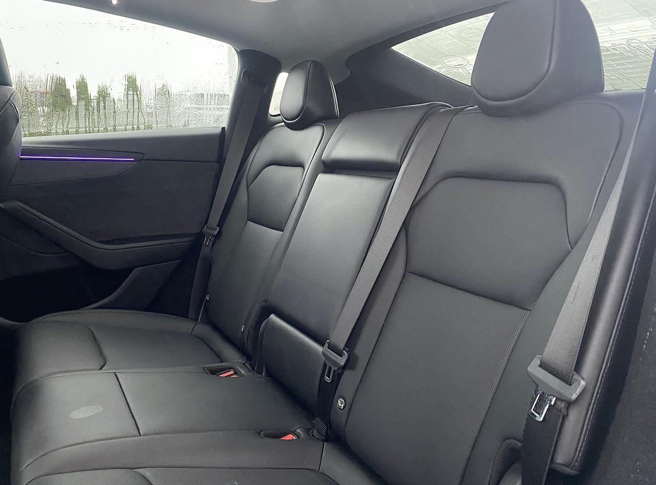 Inside, the Model Y Long Range surrounds you with modern amenities, including premium seating surfaces, heated front and rear seats, heated steering wheel, and a panoramic glass roof that floods the cabin with natural light. The minimalist interior is centered around a 15-inch touchscreen display with navigation, Bluetooth® connectivity, Apple CarPlay® and Android Auto compatibility, and a premium audio system. Ample cargo space, split-folding rear seats, and a spacious cabin make it ideal for families and adventurers alike.
