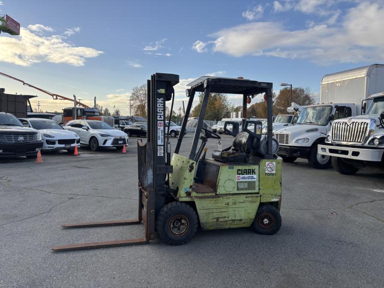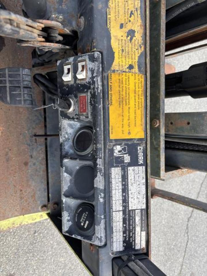 2000 CLARK GPS 15, 3 STAGE FORKLIFT, GREEN, VIN GP12705577237KOF, HOURS AND YEAR NOT VERIFIED), PROPANE, FEATURES: RUBBER TIRES, WEIGHT 2920KG, FORKS, 112 INCH MAST HEIGHT, All measurements are considered to be accurate but are not guaranteed This listing does not come with a propane tank, the purchaser will have to supply their own propane tank (Actual Year is unconfirmed ) $5,210.00 plus $375 processing fee, $5,585.00 total payment obligation before taxes. Listing report, warranty, contract commitment cancellation fee. All above specifications and information is considered to be accurate but is not guaranteed and no opinion or advice is given as to whether this item should be purchased. We do not allow test drives due to theft, fraud, acts of vandalism and undetectable impaired driving. Instead we provide the following benefits: Complimentary Warranty (with options to extend), Limited Money Back Satisfaction Guarantee on Fully Completed Contracts, Contract Commitment Cancellation, and an Open-Ended Sell-Back Option. Ask seller for details or call 604-522-REPO(7376) to confirm listing availability.