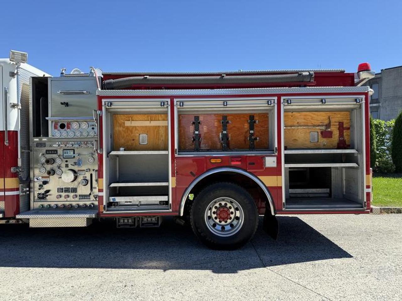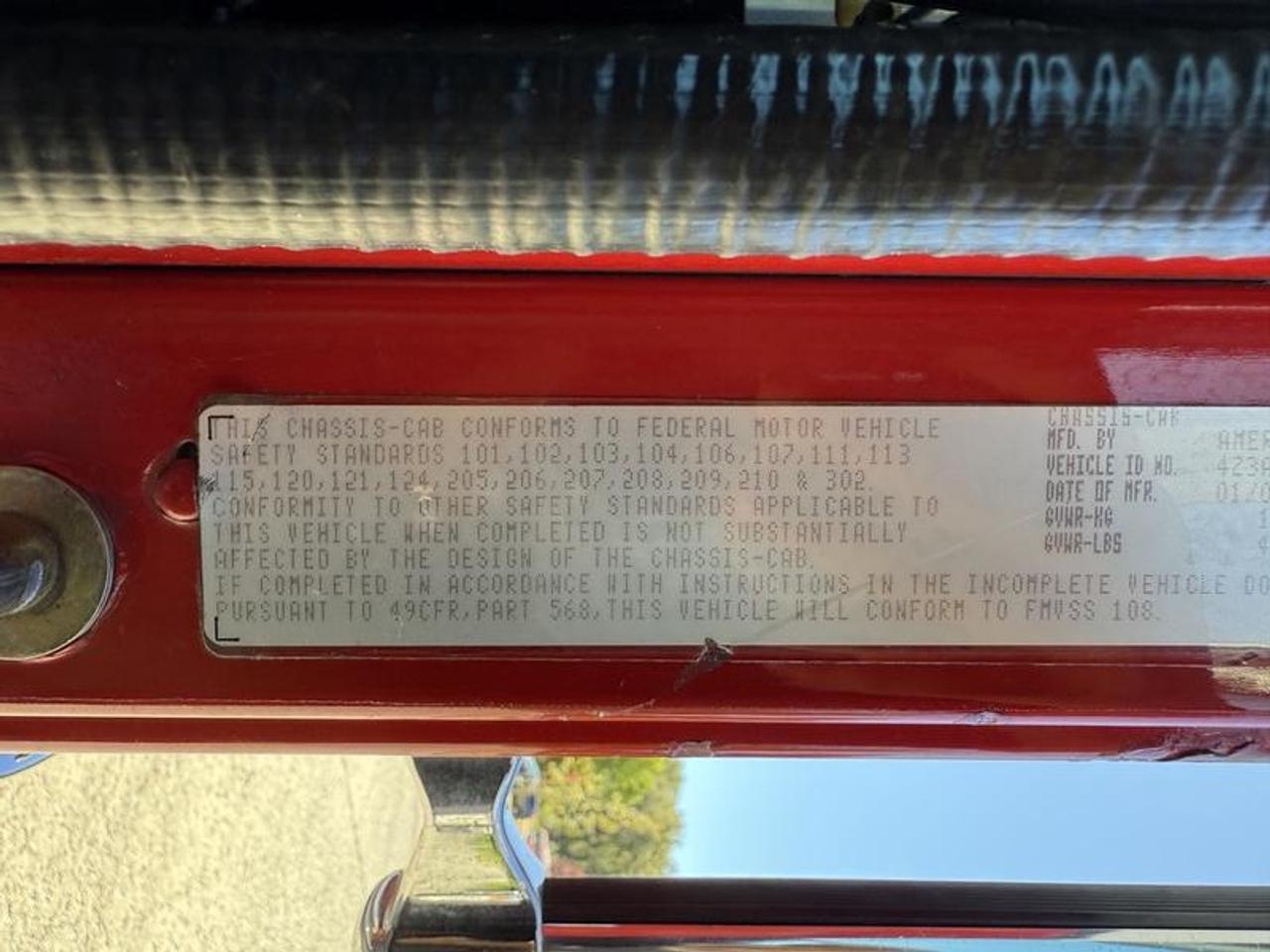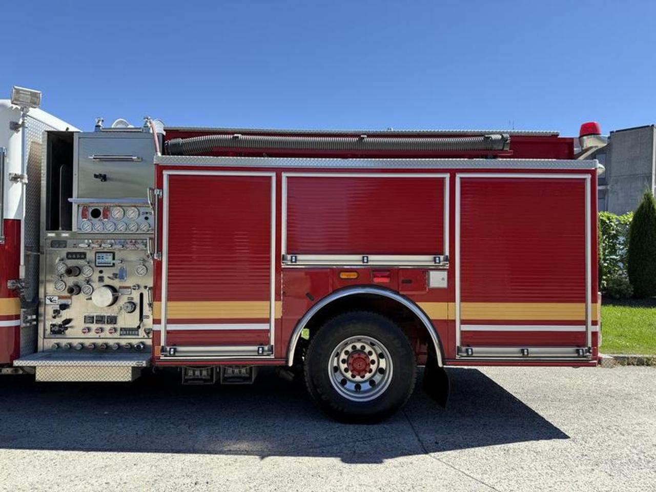 2004 American LaFrance Eagle Firetruck Diesel, 12.7L, 6 cylinder, 4 door, automatic, RWD, red exterior, grey interior, vinyl. GVWR 19,958 kg / 44,000 lbs. Certification and decal valid until February 2026. This item is currently OFFSITE. You must register an appointment with our office to schedule an offsite viewing. Appointments must be made a minimum of one business day in advance (and as defined by the days that Repo.com is open for business) before your appointment can be scheduled and confirmed. We may, at our own discretion, instead opt to transport smaller items to Repo.com's main yard for viewing purposes. $37,820.00 plus $375 processing fee, $38,195.00 total payment obligation before taxes. Listing report, warranty, contract commitment cancellation fee, financing available on approved credit (some limitations and exceptions may apply). All above specifications and information is considered to be accurate but is not guaranteed and no opinion or advice is given as to whether this item should be purchased. We do not allow test drives due to theft, fraud, acts of vandalism and undetectable impaired driving. Instead we provide the following benefits: Complimentary Warranty (with options to extend), Limited Money Back Satisfaction Guarantee on Fully Completed Contracts, Contract Commitment Cancellation, and an Open-Ended Sell-Back Option. Ask seller for details or call 604-522-REPO(7376) to confirm listing availability.