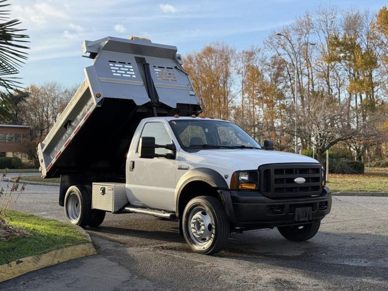 This 2006 Ford F-550 regular cab 2WD DRW 9-foot dump truck is equipped with a 6.8L 10-cylinder engine, automatic transmission and rear-wheel drive, and features a white exterior with a tan cloth interior. Equipment includes storage compartments, beacon light, auxiliary switches, dump controller, back-up camera, air conditioning and heat, cup holders, AM/FM radio and a 12V input. The dump box measures approximately 9 feet long, 7 feet 2 inches wide and 2 feet high. Overall vehicle dimensions are about 19 feet 9 inches long, 7 feet 10 inches wide and 8 feet 1 inch high, with a GVWR of 8,142 kg (17,950 lb). This item is currently OFFSITE. You must register an appointment with our office to schedule an offsite viewing. Appointments must be made a minimum of one business day in advance (and as defined by the days that Repo.com is open for business) before your appointment can be scheduled and confirmed. We may, at our own discretion, instead opt to transport smaller items to Repo.com's main yard for viewing purposes. $29,910.00 plus $375 processing fee, $30,285.00 total payment obligation before taxes. Listing report, warranty, contract commitment cancellation fee, financing available on approved credit (some limitations and exceptions may apply). All above specifications and information is considered to be accurate but is not guaranteed and no opinion or advice is given as to whether this item should be purchased. We do not allow test drives due to theft, fraud, acts of vandalism and undetectable impaired driving. Instead we provide the following benefits: Complimentary Warranty (with options to extend), Limited Money Back Satisfaction Guarantee on Fully Completed Contracts, Contract Commitment Cancellation, and an Open-Ended Sell-Back Option. Ask seller for details or call 604-522-REPO(7376) to confirm listing availability.
