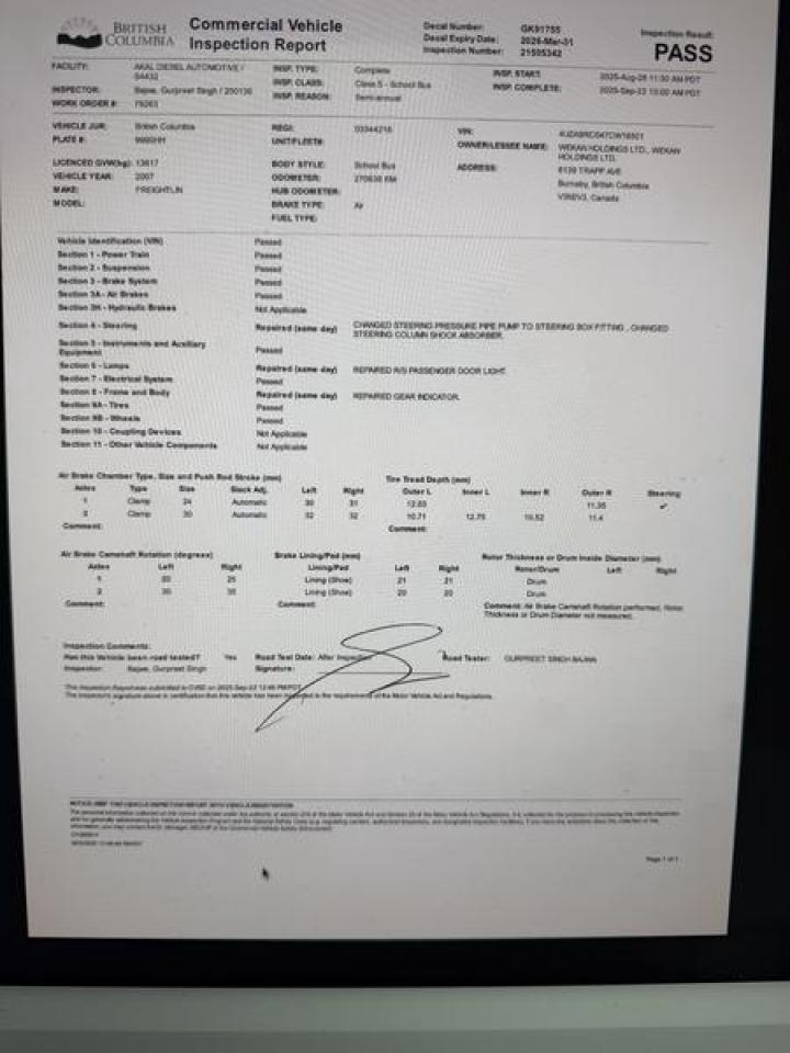 2007 Freightliner B2 22 passenger School Bus Air Brakes Mercedes Diesel Wheelchair access, 22 passenger plus 1 driver plus 4 wheelchair spots School Bus Certificate and decal valid to March 2026 $15,570.00 plus $375 processing fee, $15,945.00 total payment obligation before taxes. Listing report, warranty, contract commitment cancellation fee, financing available on approved credit (some limitations and exceptions may apply). All above specifications and information is considered to be accurate but is not guaranteed and no opinion or advice is given as to whether this item should be purchased. We do not allow test drives due to theft, fraud, acts of vandalism and undetectable impaired driving. Instead we provide the following benefits: Complimentary Warranty (with options to extend), Limited Money Back Satisfaction Guarantee on Fully Completed Contracts, Contract Commitment Cancellation, and an Open-Ended Sell-Back Option. Ask seller for details or call 604-522-REPO(7376) to confirm listing availability.