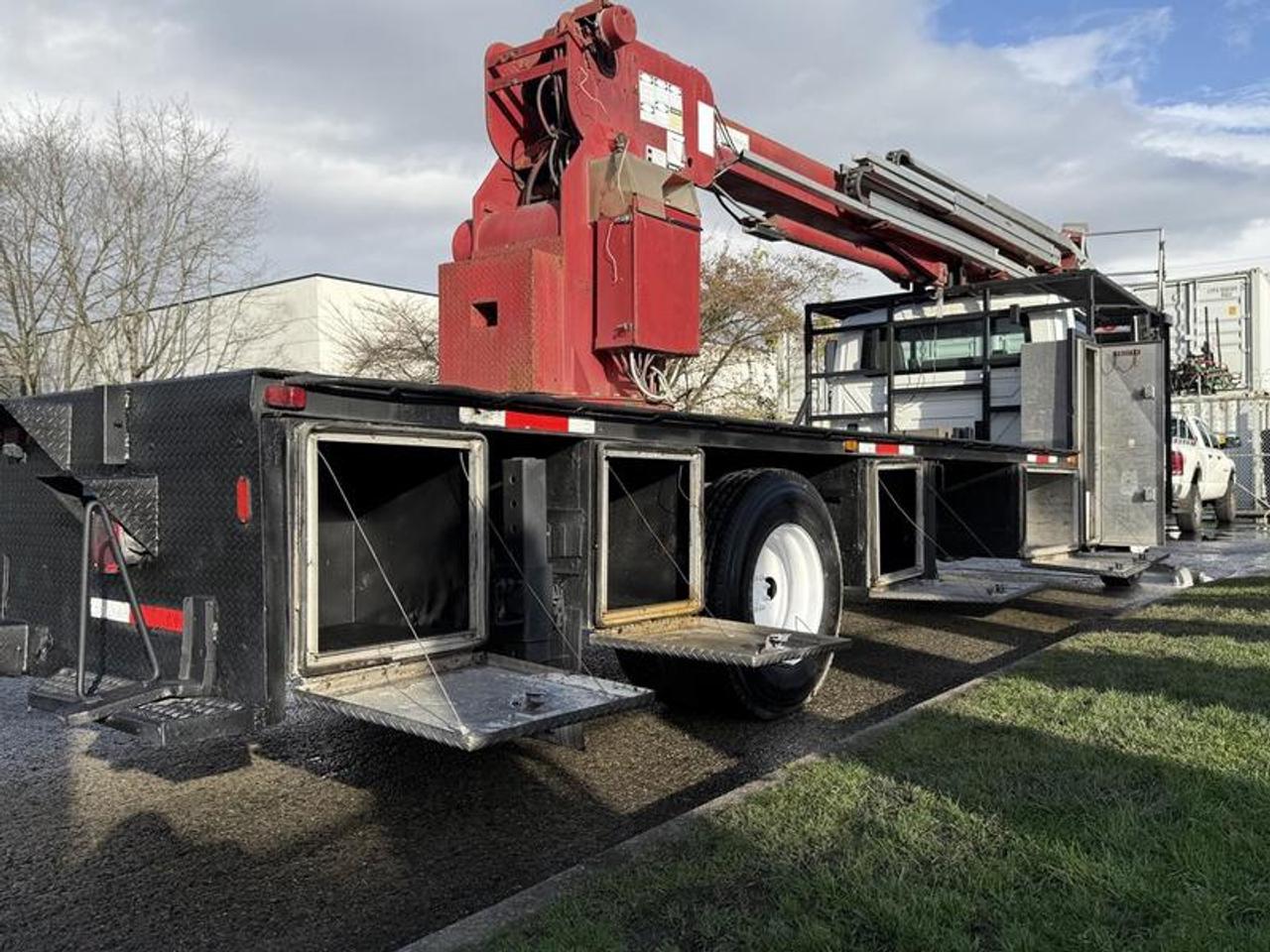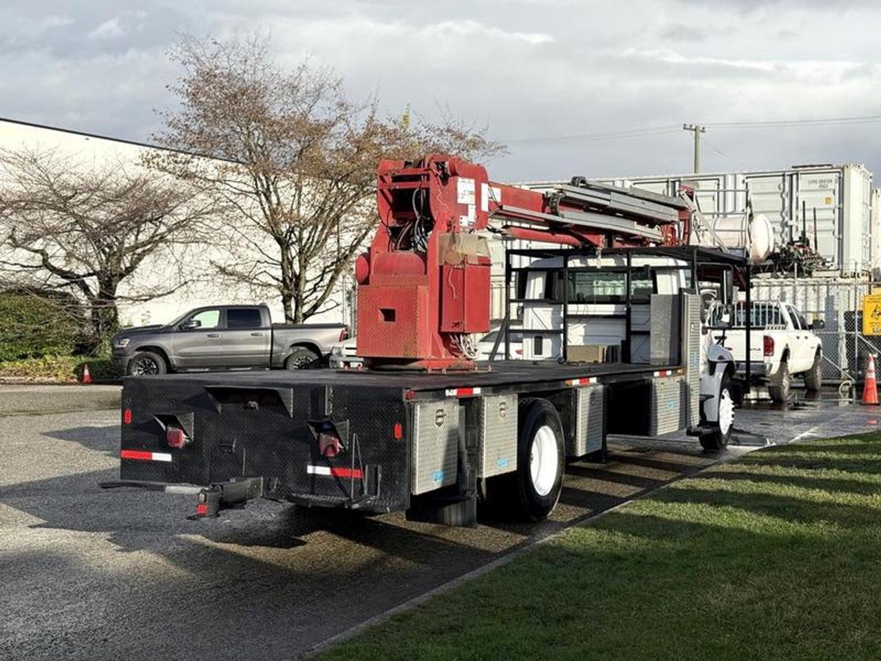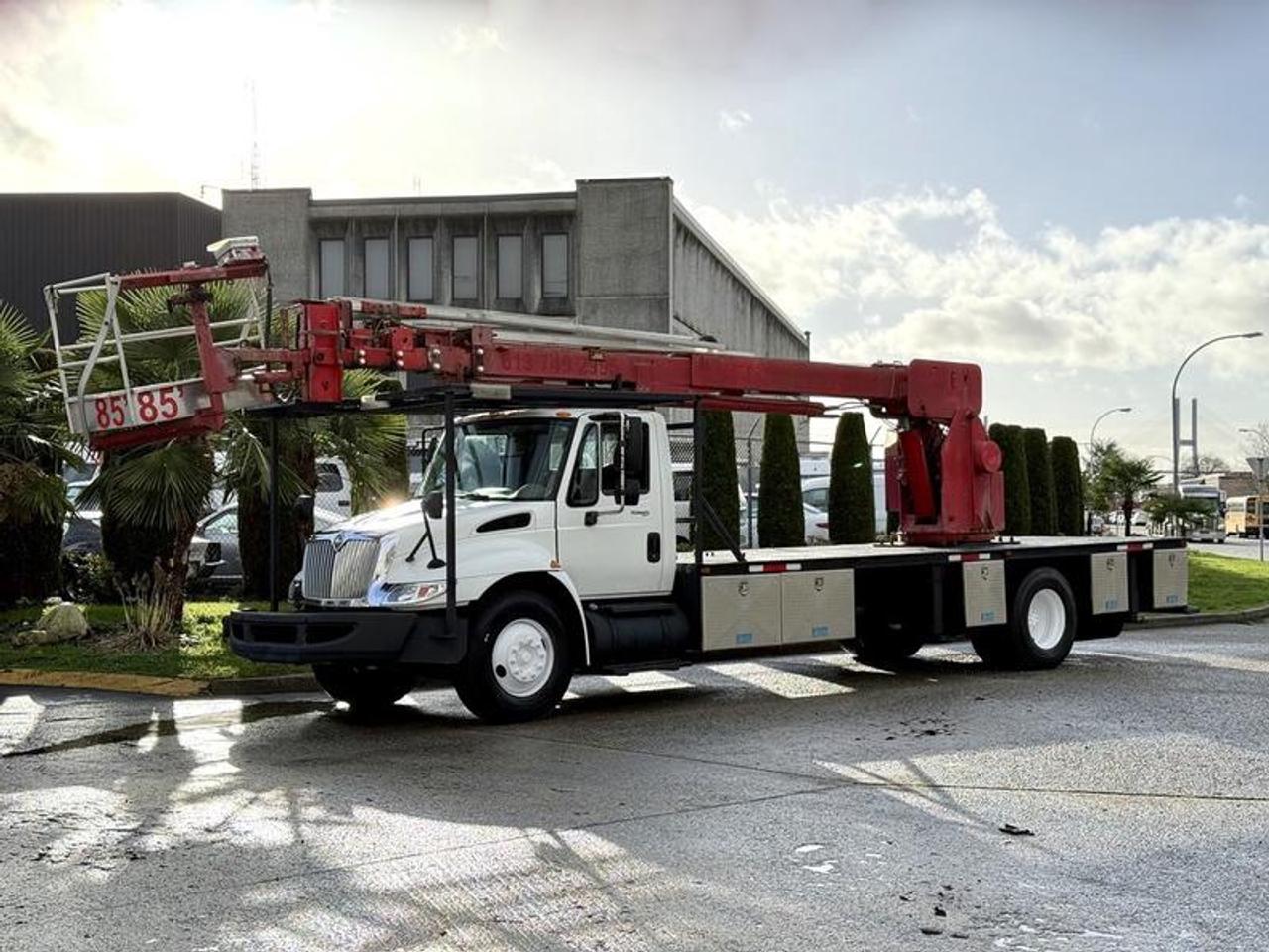 The 2010 International 4300 Durastar Bucket Flat Deck Truck is a diesel-powered commercial work truck built for aerial service and utility applications, equipped with a 7.6L MaxxForce inline-6 diesel engine, automatic transmission, and 4x2 drivetrain. This unit features a bucket lift mounted on a flat deck configuration with integrated storage compartments, offering a practical platform for electrical, signage, telecom, and maintenance work. The cab seats up to three and includes cruise control and an AM/FM radio, while the flat deck measures approximately 23.5 feet in length and 8 feet in width, providing ample working space and stability. Finished in white with a grey vinyl interior, this International 4300 bucket truck is well suited for commercial fleets requiring reach, utility, and durability in a versatile service vehicle. Certificate and decal valid to December 2026 This item is currently OFFSITE. You must register an appointment with our office to schedule an offsite viewing. Appointments must be made a minimum of one business day in advance (and as defined by the days that Repo.com is open for business) before your appointment can be scheduled and confirmed. We may, at our own discretion, instead opt to transport smaller items to Repo.com's main yard for viewing purposes. $32,810.00 plus $375 processing fee, $33,185.00 total payment obligation before taxes. Listing report, warranty, contract commitment cancellation fee, financing available on approved credit (some limitations and exceptions may apply). All above specifications and information is considered to be accurate but is not guaranteed and no opinion or advice is given as to whether this item should be purchased. We do not allow test drives due to theft, fraud, acts of vandalism and undetectable impaired driving. Instead we provide the following benefits: Complimentary Warranty (with options to extend), Limited Money Back Satisfaction Guarantee on Fully Completed Contracts, Contract Commitment Cancellation, and an Open-Ended Sell-Back Option. Ask seller for details or call 604-522-REPO(7376) to confirm listing availability.