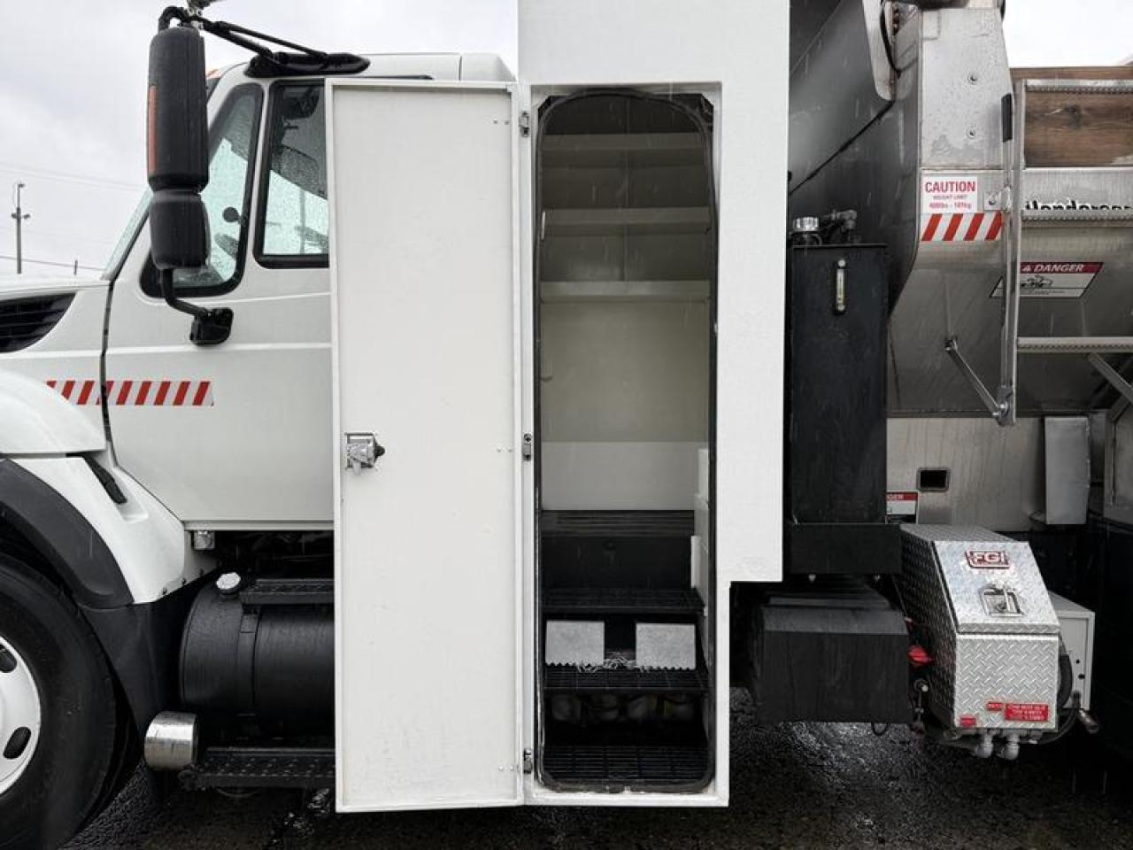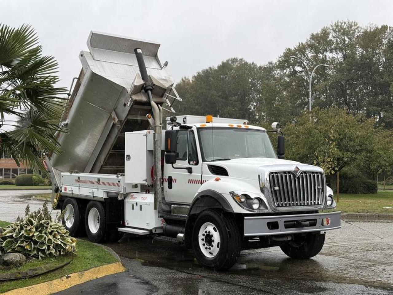 2011 International 7500 tandem axle dump truck with Twister T100 sander, powered by a 9.3L diesel engine and equipped with an automatic Allison transmission. Features PTO, differential lock, trailer air supply, air suspension dump, tarp control, and multiple lighting switches including strobe, light bar, step, and rear arrow signal lights. Includes foldable side ladder for dump access, tool box compartments (1000 lb max load), interior Espar heating valves, and air brakes. The 12-foot dump box measures 78 wide and 4 high. White exterior over grey cloth interior with cruise control, AM/FM radio, power windows, locks, and mirrors. GVWR 54,000 lbs. Suitable for winter or year-round municipal service. $65,820.00 plus $375 processing fee, $66,195.00 total payment obligation before taxes. Listing report, warranty, contract commitment cancellation fee, financing available on approved credit (some limitations and exceptions may apply). All above specifications and information is considered to be accurate but is not guaranteed and no opinion or advice is given as to whether this item should be purchased. We do not allow test drives due to theft, fraud, acts of vandalism and undetectable impaired driving. Instead we provide the following benefits: Complimentary Warranty (with options to extend), Limited Money Back Satisfaction Guarantee on Fully Completed Contracts, Contract Commitment Cancellation, and an Open-Ended Sell-Back Option. Ask seller for details or call 604-522-REPO(7376) to confirm listing availability.