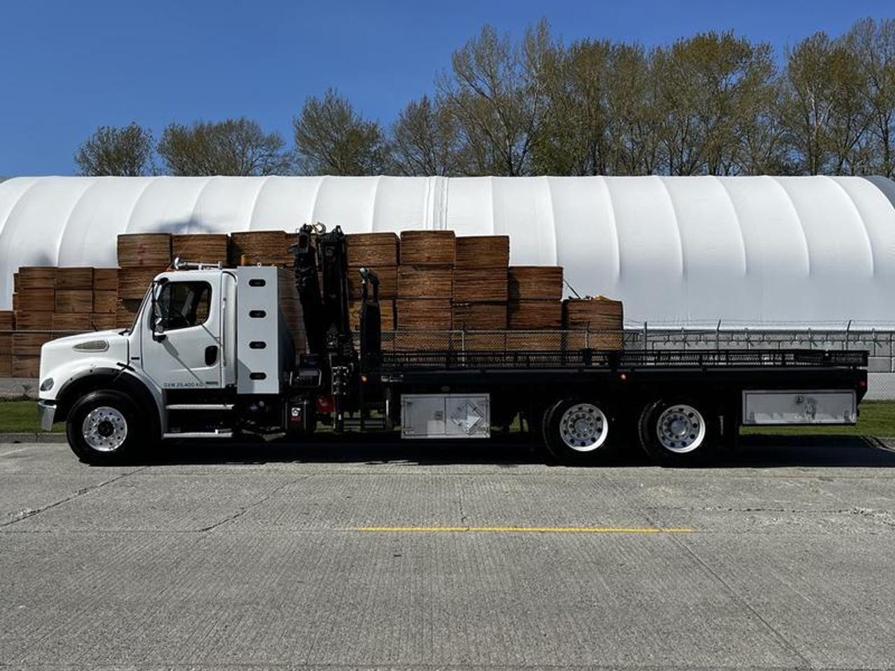 2012 Freightliner M2 112 22 Foot Flat Deck With Crane Air Brakes Natural Gas, 8.9L, 6 cylinder, 2 door, automatic, 6X4, cruise control, air conditioning, AM/FM radio, power door locks, power windows, white exterior, grey interior. Certificate and Decal Valid to June 2026 This item is currently OFFSITE. You must register an appointment with our office to schedule an offsite viewing. Appointments must be made a minimum of one business day in advance (and as defined by the days that Repo.com is open for business) before your appointment can be scheduled and confirmed. We may, at our own discretion, instead opt to transport smaller items to Repo.com's main yard for viewing purposes. $128,820.00 plus $375 processing fee, $129,195.00 total payment obligation before taxes. Listing report, warranty, contract commitment cancellation fee, financing available on approved credit (some limitations and exceptions may apply). All above specifications and information is considered to be accurate but is not guaranteed and no opinion or advice is given as to whether this item should be purchased. We do not allow test drives due to theft, fraud, acts of vandalism and undetectable impaired driving. Instead we provide the following benefits: Complimentary Warranty (with options to extend), Limited Money Back Satisfaction Guarantee on Fully Completed Contracts, Contract Commitment Cancellation, and an Open-Ended Sell-Back Option. Ask seller for details or call 604-522-REPO(7376) to confirm listing availability.